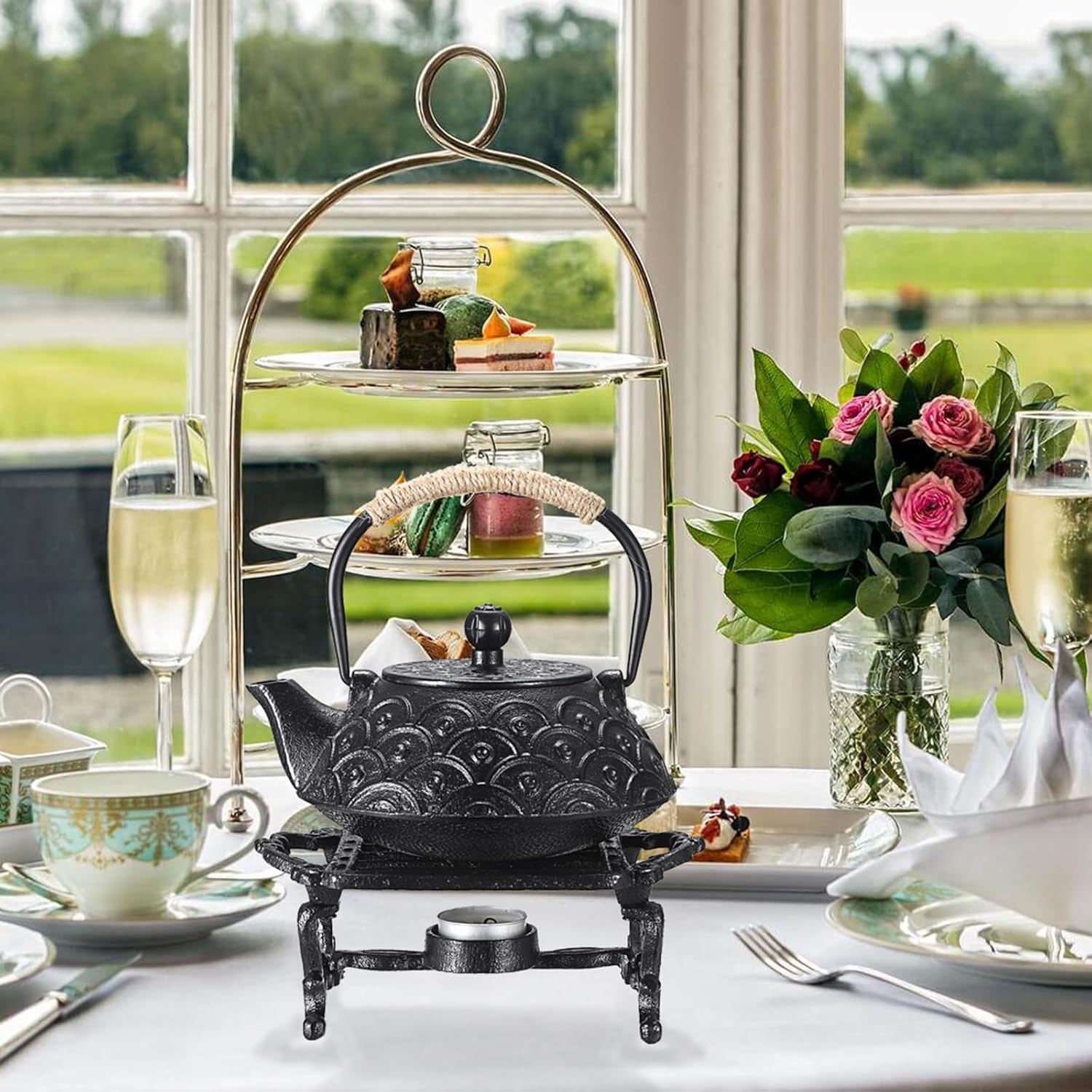 Sumnacon Tea Warmer Cast Iron Tea Pot Warmer with Tealight Candle Holder Sturdy Functional Teapot Warmer Stand for Office Party or Desk RetroTea Pot Heater for Heating Milk,Tea,Coffee,Food