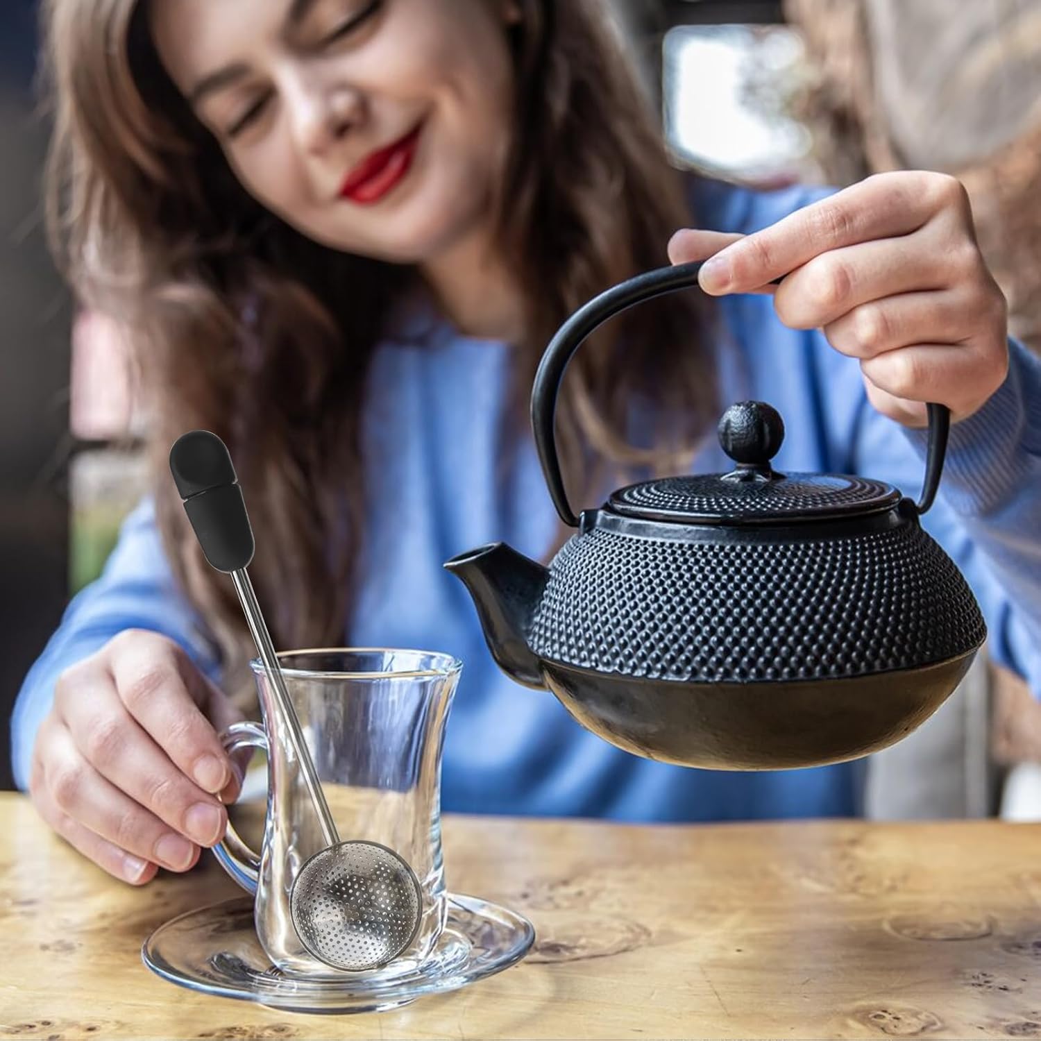 - Easy to Use: The tea infuser adopts a large capacity tea ball, which can accommodate filtering 3 teaspoons of tea. The tea filter has a 5.5 inch extended handle, suitable for tea cups and teapots. The tail end is equipped with a rotatable and sturdy knob, which can be easily twisted to place tea leaves.