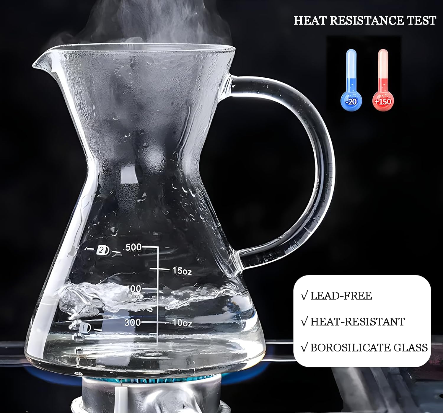 - 【HEALTHY LEAD-FREE GLASS】The pour over coffee maker set is made of food-grade glass , premium clear, thick-walled, borosilicate, heat-resistant glass, which is durable and reliable, safe for dishwasher and microwave, easy to clean.