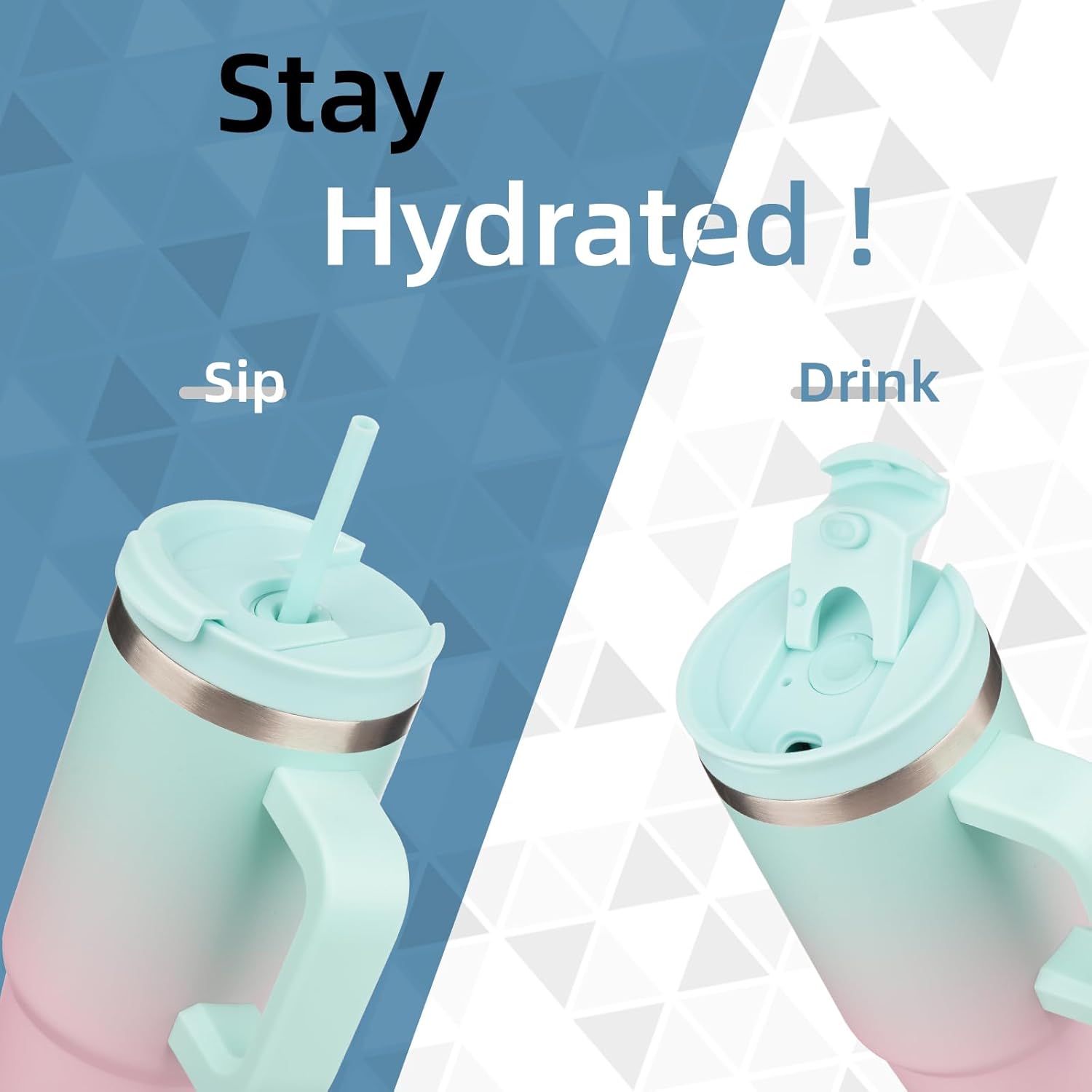 - Tapered shape designed slim-base makes the tumbler easily fit in most cup holders.Comfort and sturdy handle makes it easy to carry anywhere,suitable for short term driving, gym,office,picnics, or daily use at home