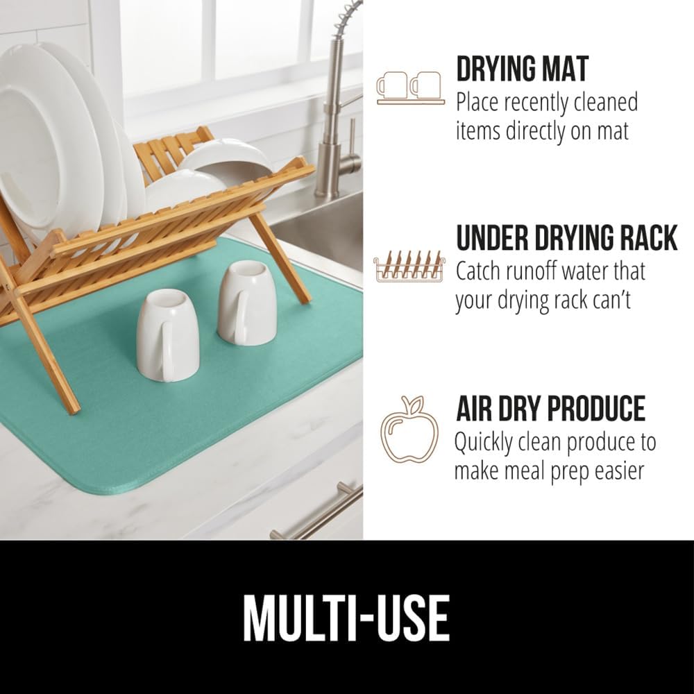 GORILLA GRIP Ultra Water Absorbent Microfiber Dish Drying Mat, 18x32, Quick Dry Thick Mesh, Slip Resistant Pad for Sink Dishes or Under Rack, Kitchen Counter Accessories, Machine Wash Mats, Mint
