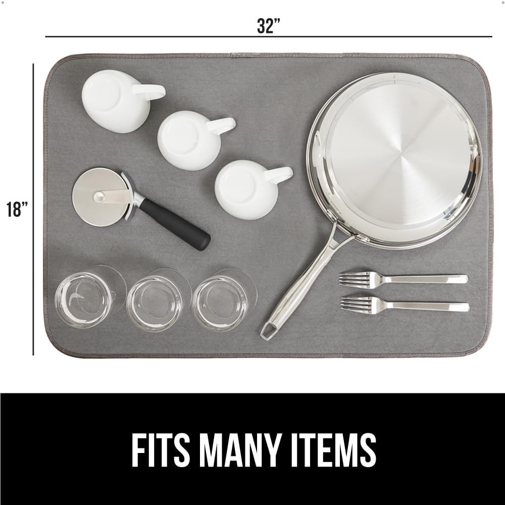 GORILLA GRIP Ultra Water Absorbent Microfiber Dish Drying Mat, 18x32, Quick Dry Thick Mesh, Slip Resistant Pad for Sink Dishes or Under Rack, Kitchen Counter Accessories, Machine Wash Mats, Gray