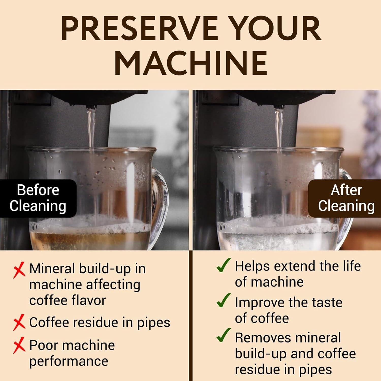 - Improves Taste & Preserves Your Machine: Regularly using a coffee descaler eliminates limescale and other hard water mineral deposits and prevents corrosion, significantly extending your machine's lifespan and enhancing taste