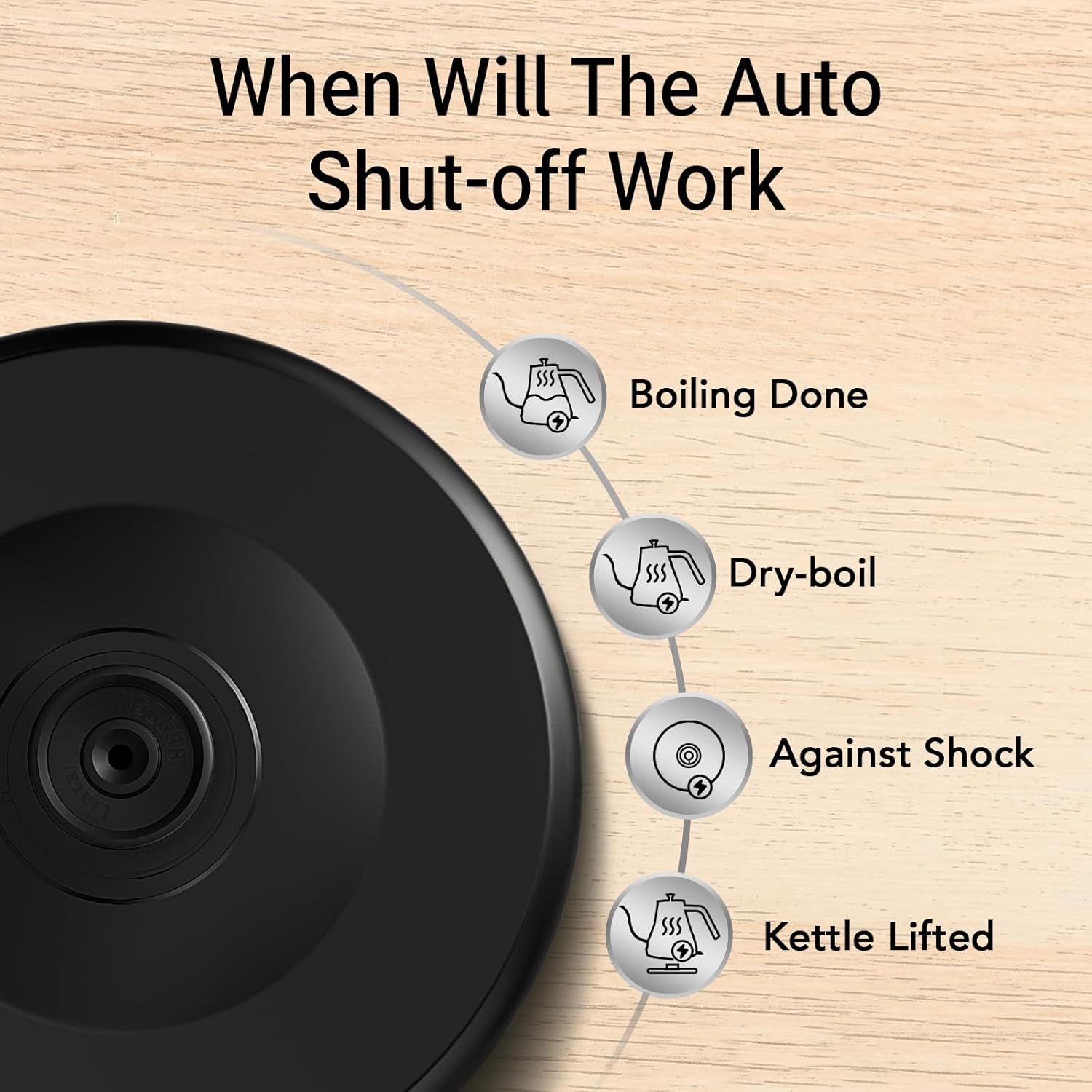 - Safe Boiling: Mecity gooseneck kettle has auto shut-off, dry-boil protection features, you can quickly and easily heat water for your favorite hot beverage without the hassle of a stovetop or traditional kettle.