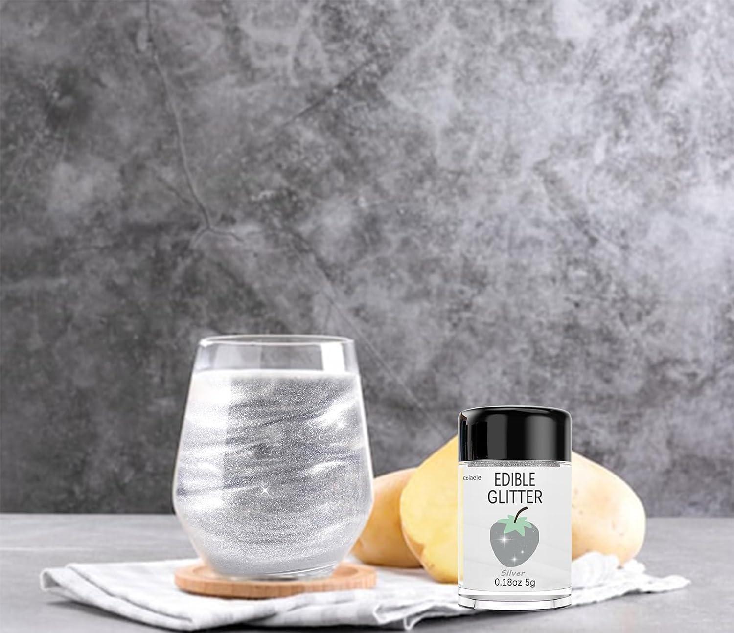 Silver Edible Glitter Glimmer Powder for Cakes Drinks - Colaele 5 grams Food Grade Luster Dust Metallic Food Decorating Sprinkle Disco Brew Dust for Cake Decorations Wine Beverage Candy Dessert, Vegan
