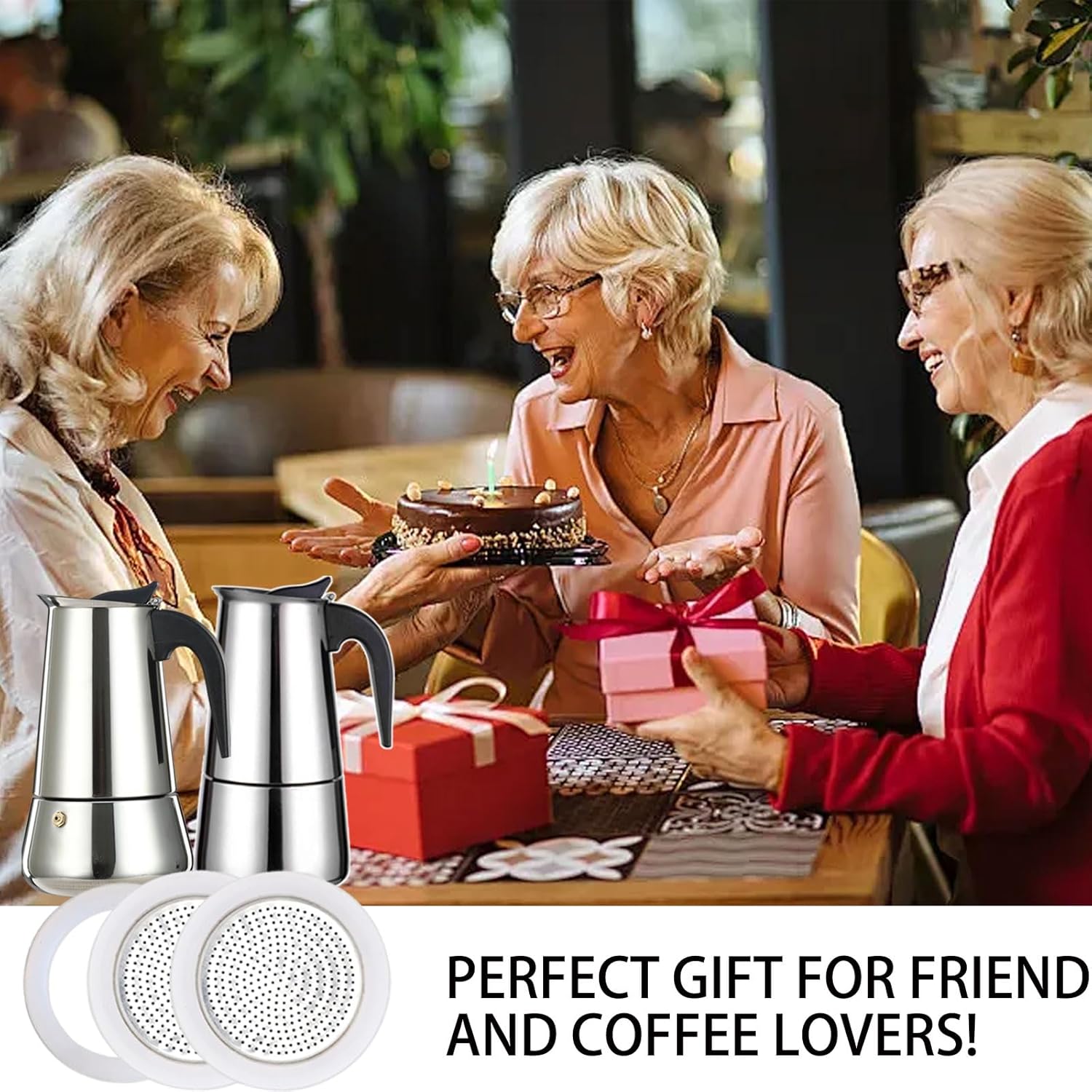 - Wide Compatibility: These replacement parts are designed to fit 6-cup stainless steel espresso moka pots of DITOSH brand. They are suitable for multiple temperature ranges and are highly practical. Never worry about a damaged gasket preventing you from enjoying your favorite cup of coffee – simply replace it. We recommend replacing the gasket every 3 to 4 months and the filter screen annually for optimal performance