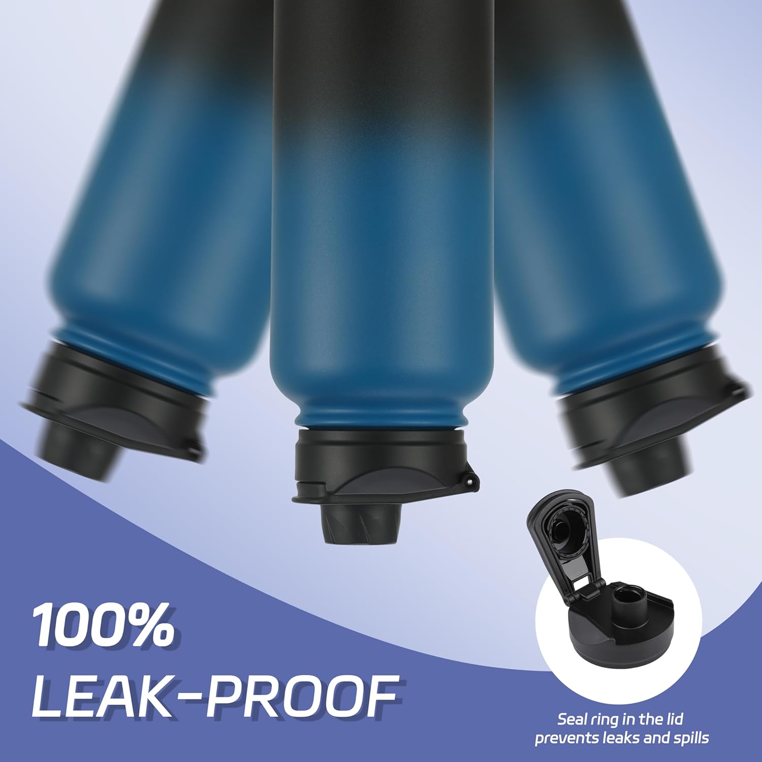 HASLE OUTFITTERS 40oz Stainless Steel Water Bottle, Vacuum Insulated Double Walled Leak Proof Sports Water Bottle with 2 Lids (Straw and Spout Lid) Keep Cold and Hot(Blue Black Gradient,1)