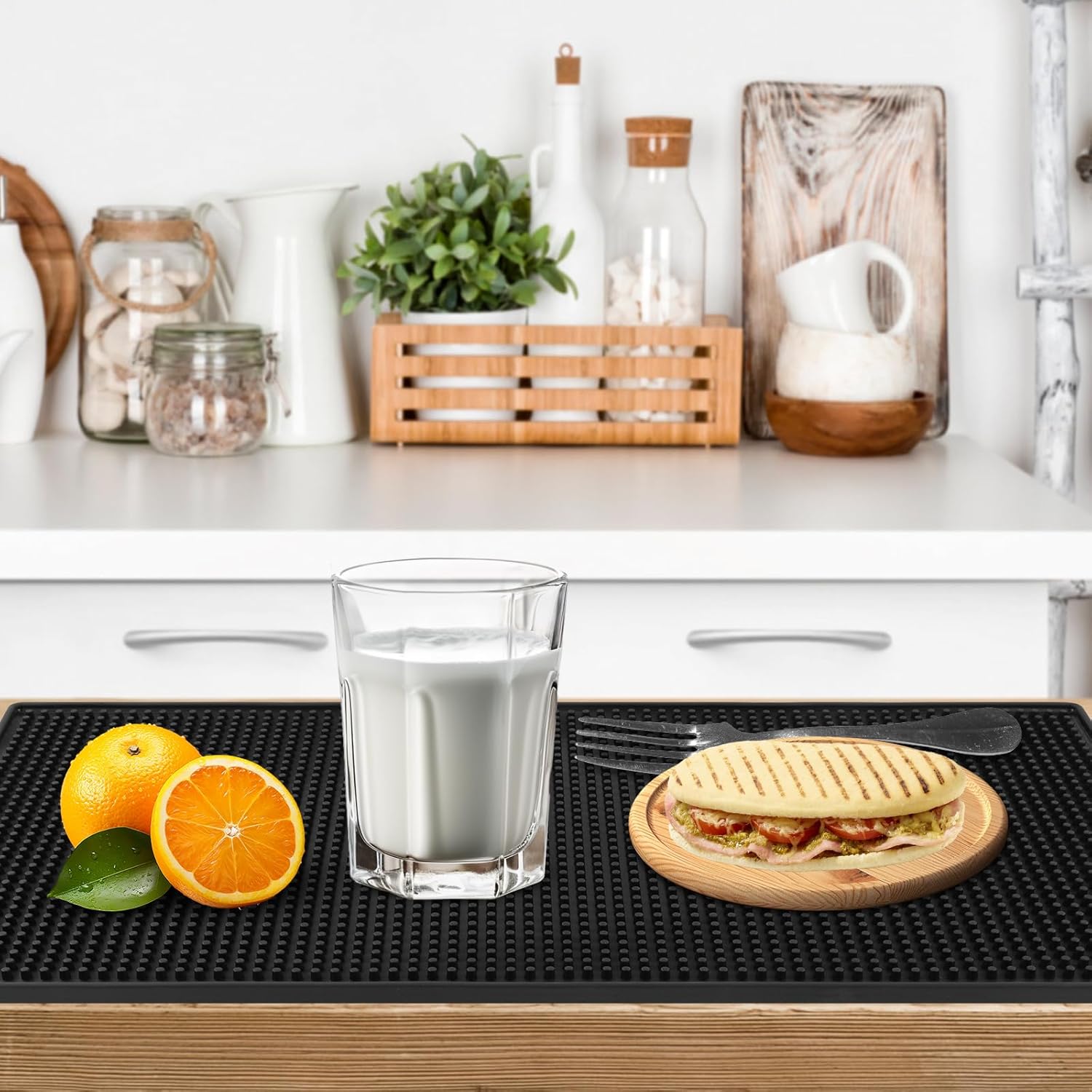 - Non-Slip back surface : Made from safety durable rubber material, Non-Slip back surface so that lay flat and look sleek at any bar top, table, or kitchen counter