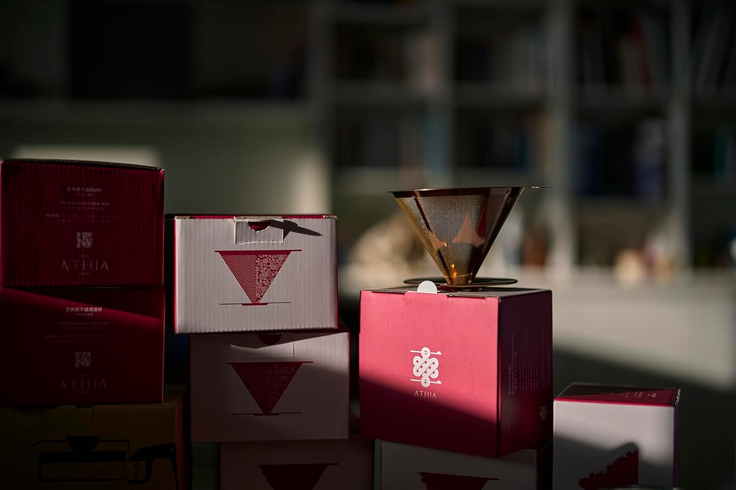 - ✅ Pure Aroma, No Paper Taste Our stainless steel mesh lets natural coffee oils flow through, enhancing depth and aroma — without the dryness or flavor loss of paper filters.more mellow by using ATHIA Golden Dripper.