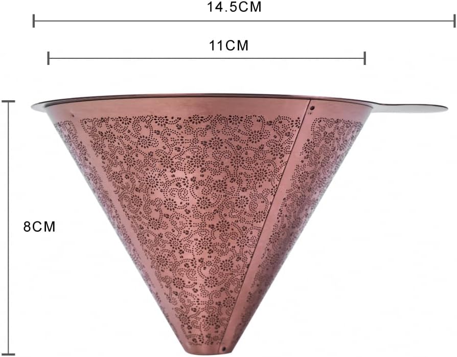 ATHIA Golden Reusable Stainless Steel Pour Over Coffee Dripper, Laser-etched Double mesh Cone Filter, Paperless, Eco-friendly, Fits Hario, Chemex, carafes & Most Coffee Makers (Rose Golden, Cone)