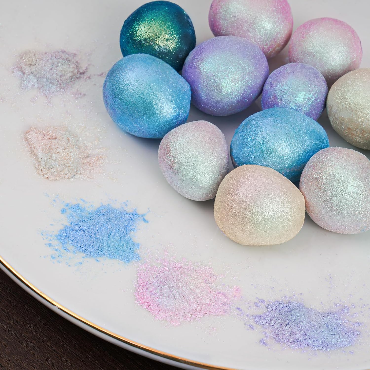 - ✔️【Easy to Use】Specially developed for food decoration and craft industries, this luster dust produces realistic looks by highly pigmented colors with a metallic finish. The pretty fine grain is more convenient for painting. To add glimmer and sparkle to your creations, simply sprinkle or dry brush the luster glitters on them. This product adheres very well to both wet and dry mediums. Attention: Seal and store glitter powder in a cool and dry place after use. Do not expose to excessive heat.