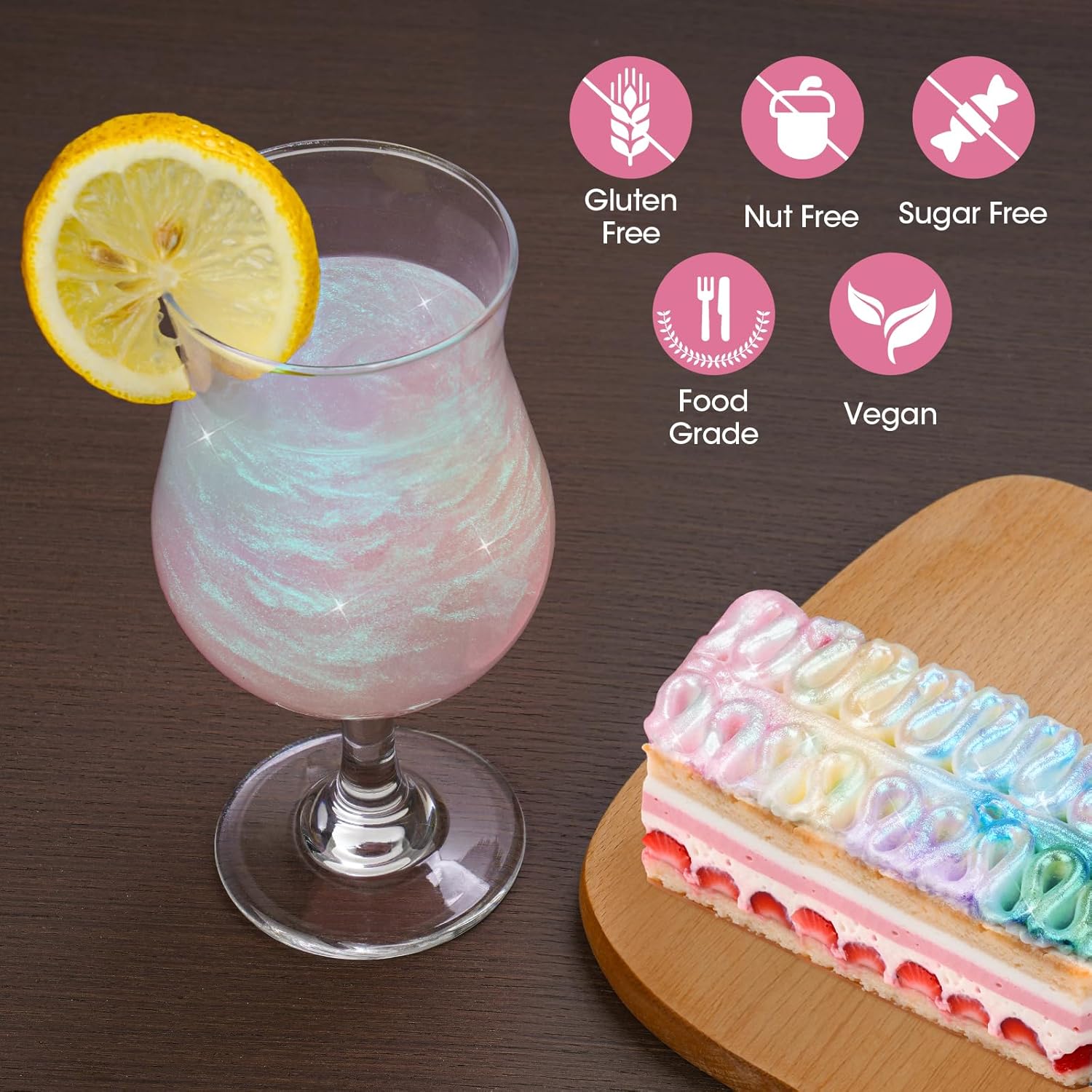- ✔️【Safe & Non-Toxic】Our multi-purpose glitter contains mica-based pigments and undergoes a specific manufacturing process to make the minerals safe and edible. It’s a safe food coloring without added sugar or flavors, and ingredients in the edible glimmer powder include mica, titanium dioxide and iron trioxide, which are color additives specifically approved for food.