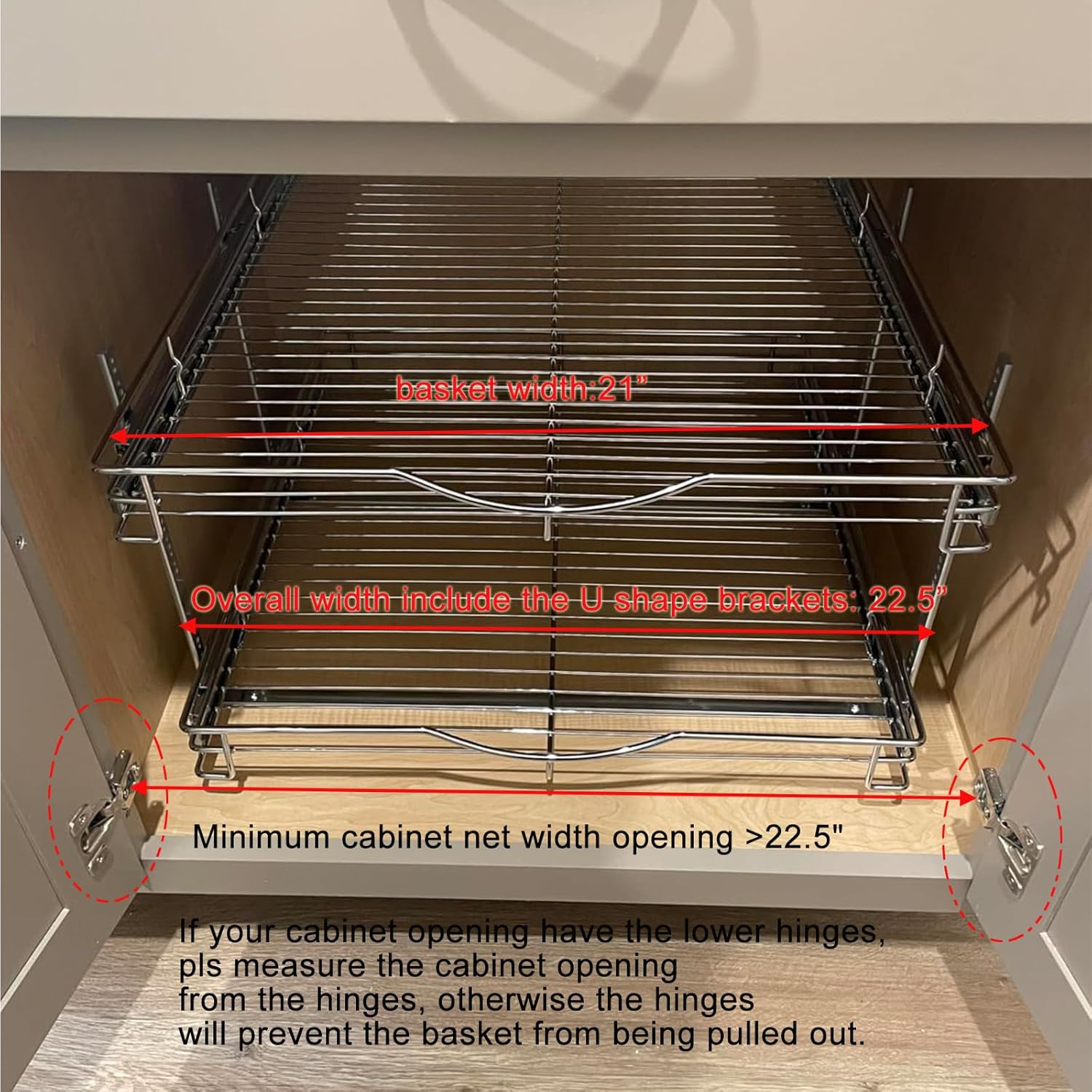 DINDON Pull Out Cabinet Organizer (22-1/2" W x 21-1/2"D), Cabinet Pull Out Shelves, 2 Tier Pull Out Drawers for Kitchen Cabinets, Wire Basket Slide Out Shelf, Pot and Pan Organizer