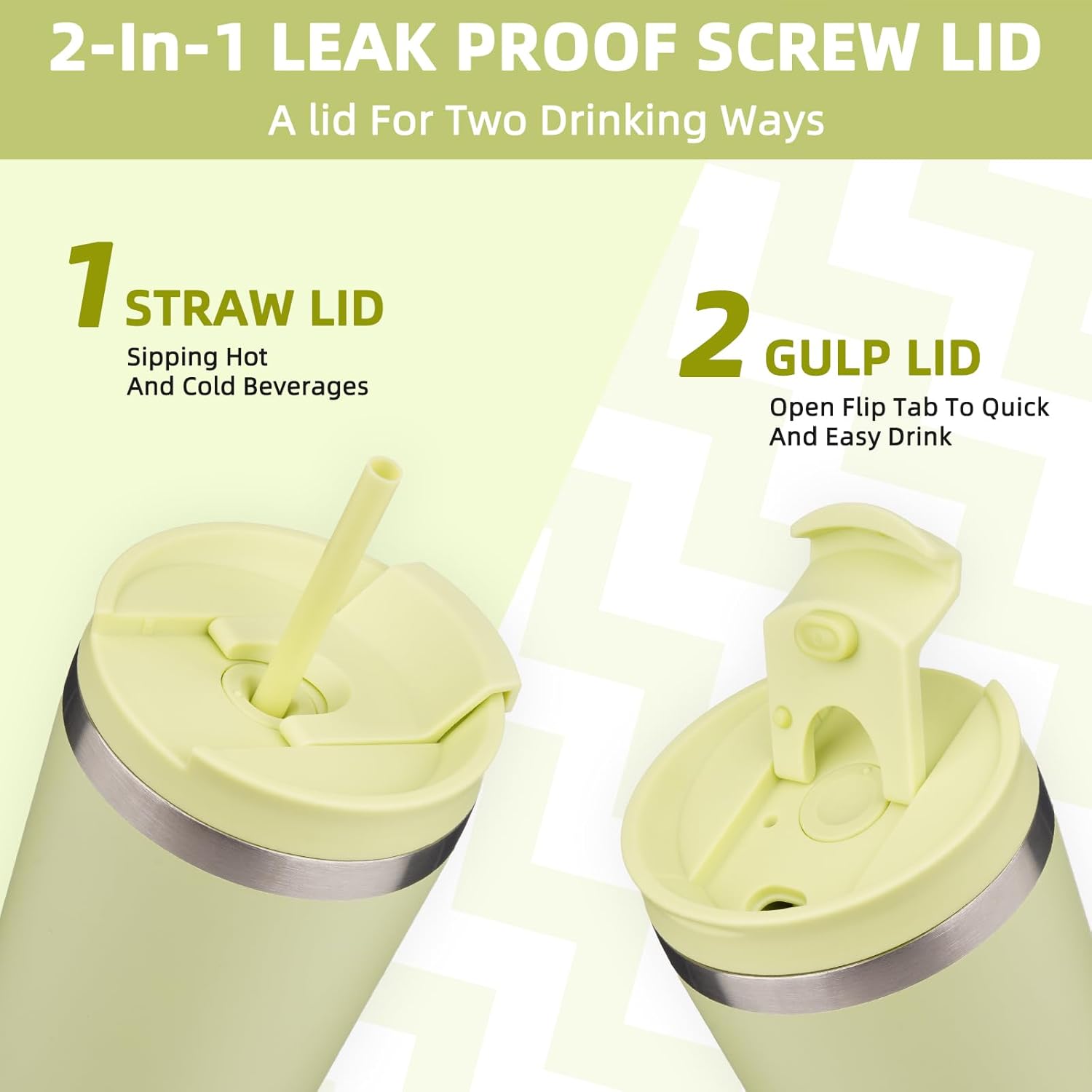 - BPA-Free Threaded Lids: The 2 In 1 Screw-on Lid, Not Only Can You Open The Lid And Drink Directly From The Flip Lid, But Also Can Insert A Straw In The Middle, Choose Your Own Way For Drinking