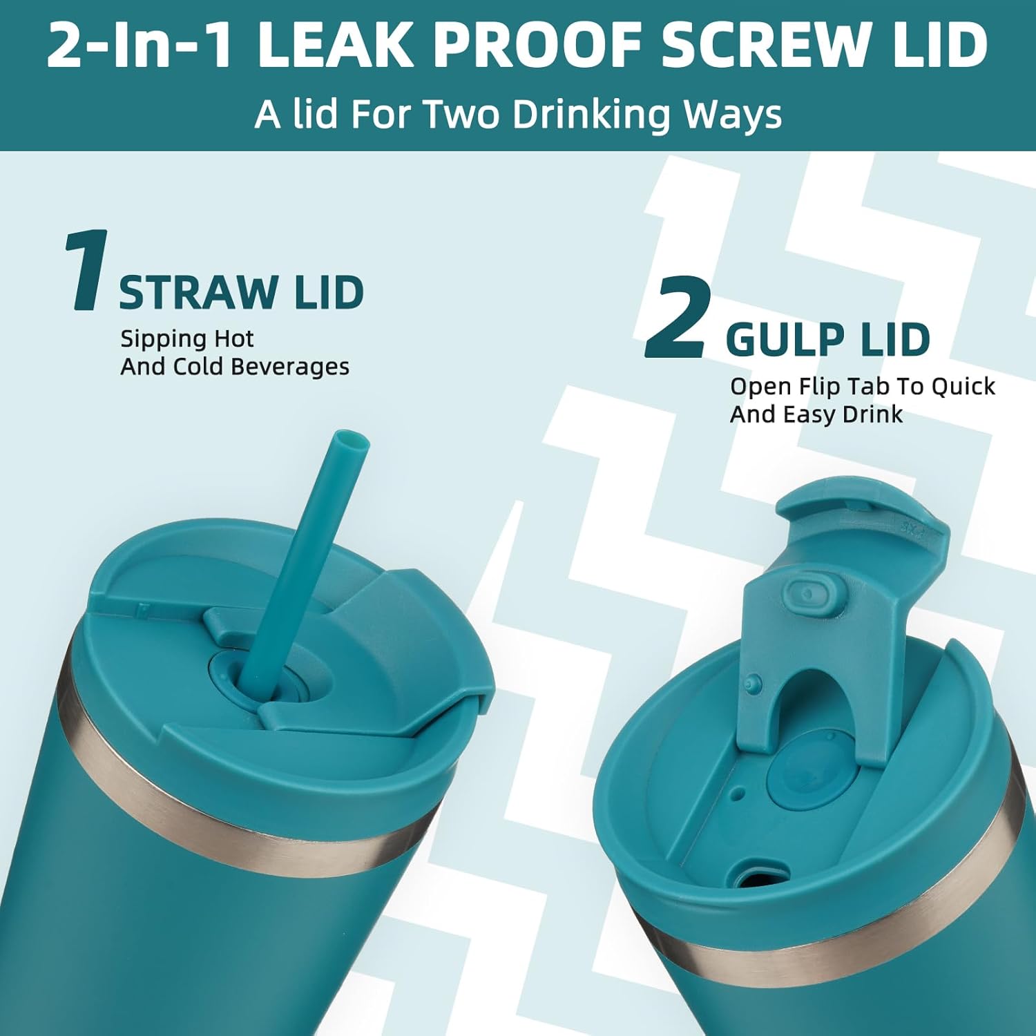 - BPA-Free Threaded Lids: The 2 In 1 Screw-on Lid, Not Only Can You Open The Lid And Drink Directly From The Flip Lid, But Also Can Insert A Straw In The Middle, Choose Your Own Way For Drinking
