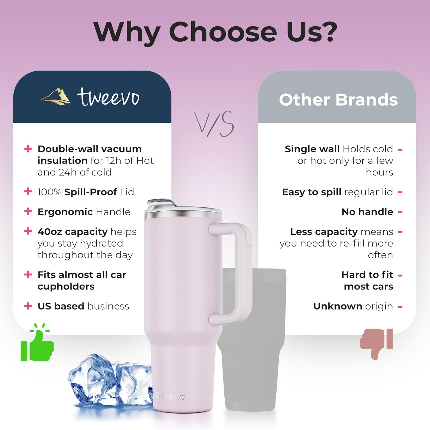 - Premium Stainless Steel Construction: Crafted from 18/8 food grade stainless steel, this 40 oz tumbler with handle and straw ensures safety and durability. The double-wall vacuum insulation retains the temperature of your drinks for extended periods, keeping them cold or hot as desired.