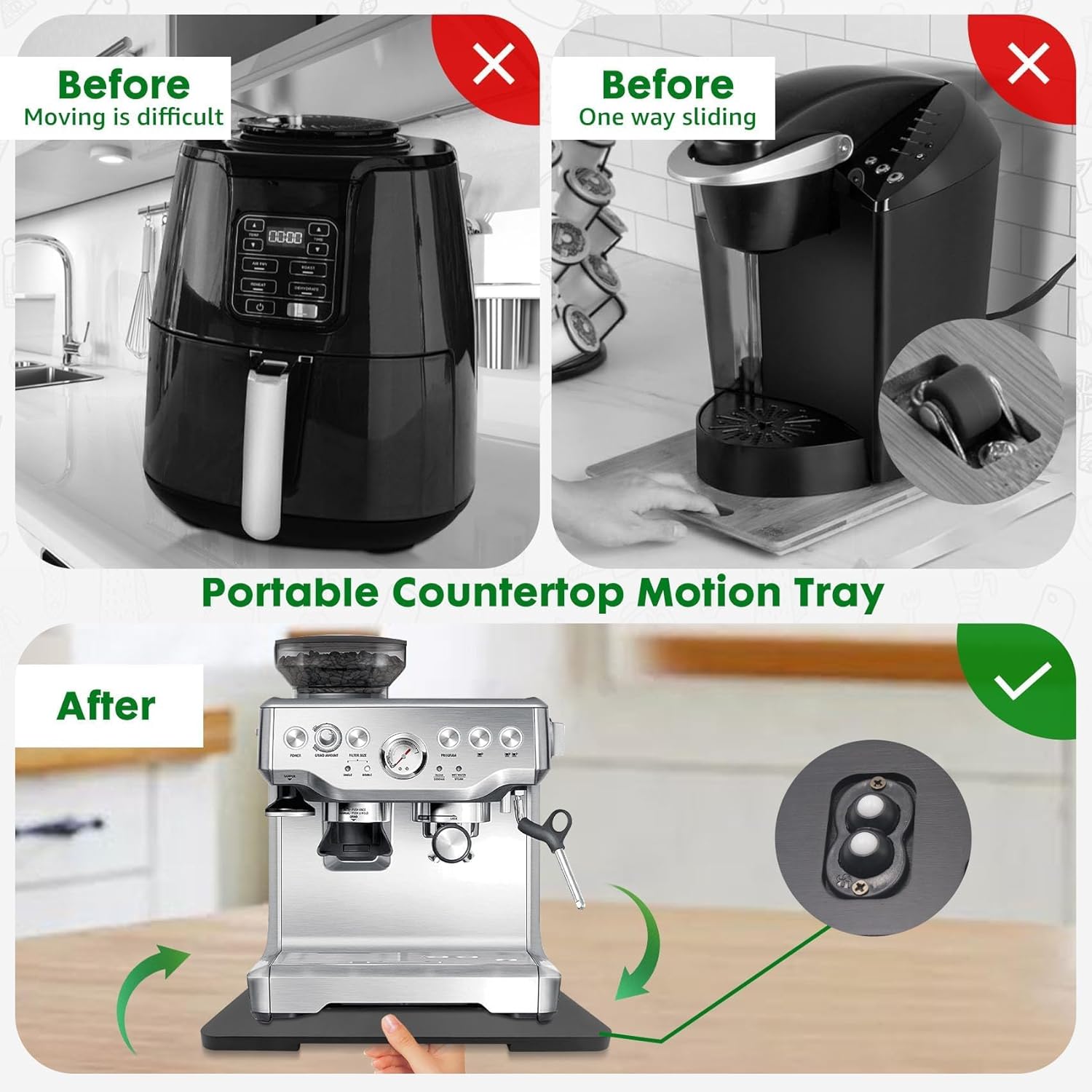 - 【360° Countertop Mobility】The appliance slider is equipped with 360° rollers for all-around mobility, making it easy to move various kitchen appliances