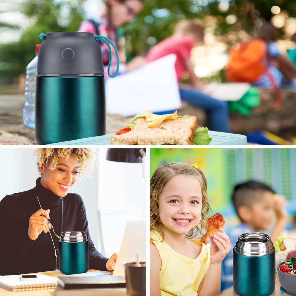 Insulated Thermo Food Jar for Hot & Cold Food for Kids Adult, 17 oz Soup Thermal Hot Food Containers for Lunch, Triple Layer Insulation Stainless Steel Food Jar with Spoon (Green)