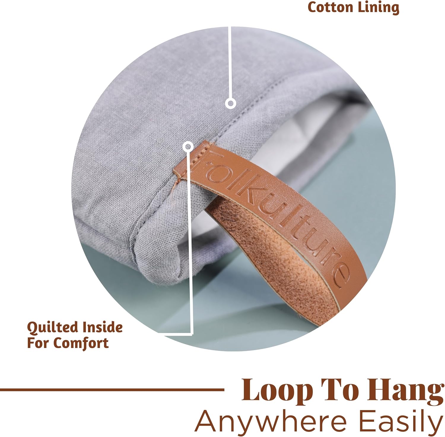 Folkulture Mini Oven Mitts Heat Resistant | (5.75x9) Set of 2 Short Grey Oven Mitts with Hanging Loop | 100% Cotton Oven Gloves or Kitchen Mittens | Small Oven Mitt Set, Grey Scallop Oven Mits