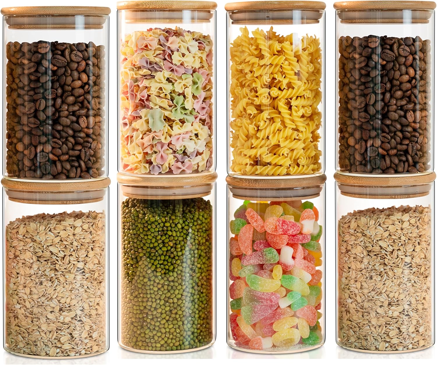 Glass Food Storage Jars Set of 8,26oz-Glass Storage Containers Clear Glass Food Canister with Bamboo Lid Airtight For Serving Tea, Coffee, Flour,Candy, Cookie, Spice(Round-8CMx15CM)