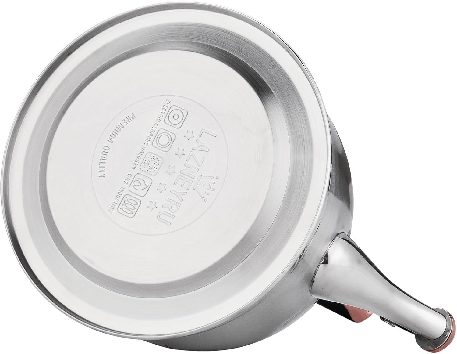 - 【Stainless Steel Design】Whole teakettle body are made of stainless steel, The thick body making it more durable and sturdy. 5-layer metal bottom with high thermal conductivity for more uniform heating and longer service life.