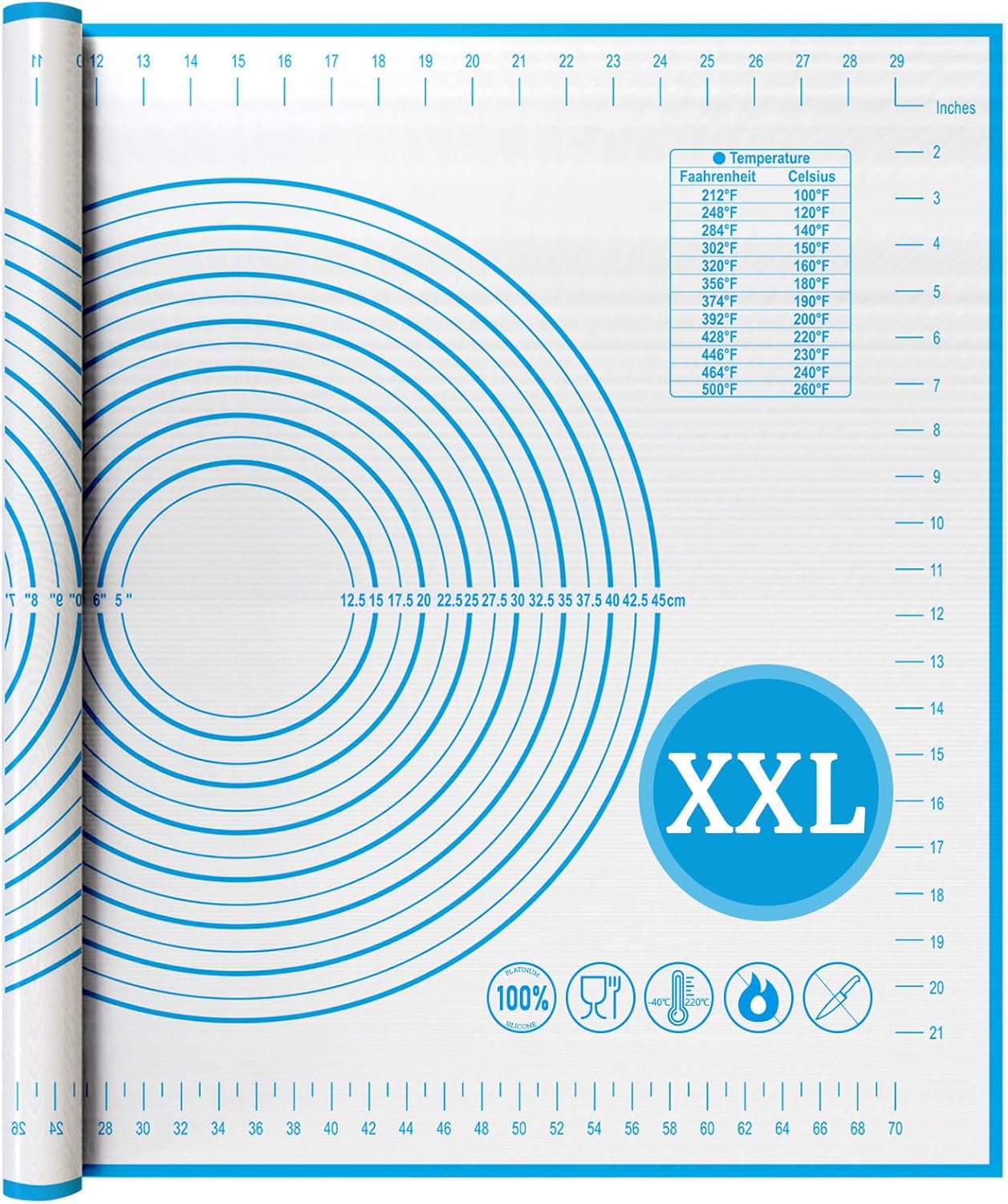 - 【Silicone Food Grade】Made of food grade silicone, this pastry mat is safe, soft, and durable. It won't deform, wrinkle, or fade. Reusable for frequent use. Our premium food grade silicone dough mat sheet is the safest and softest option for your baking needs.