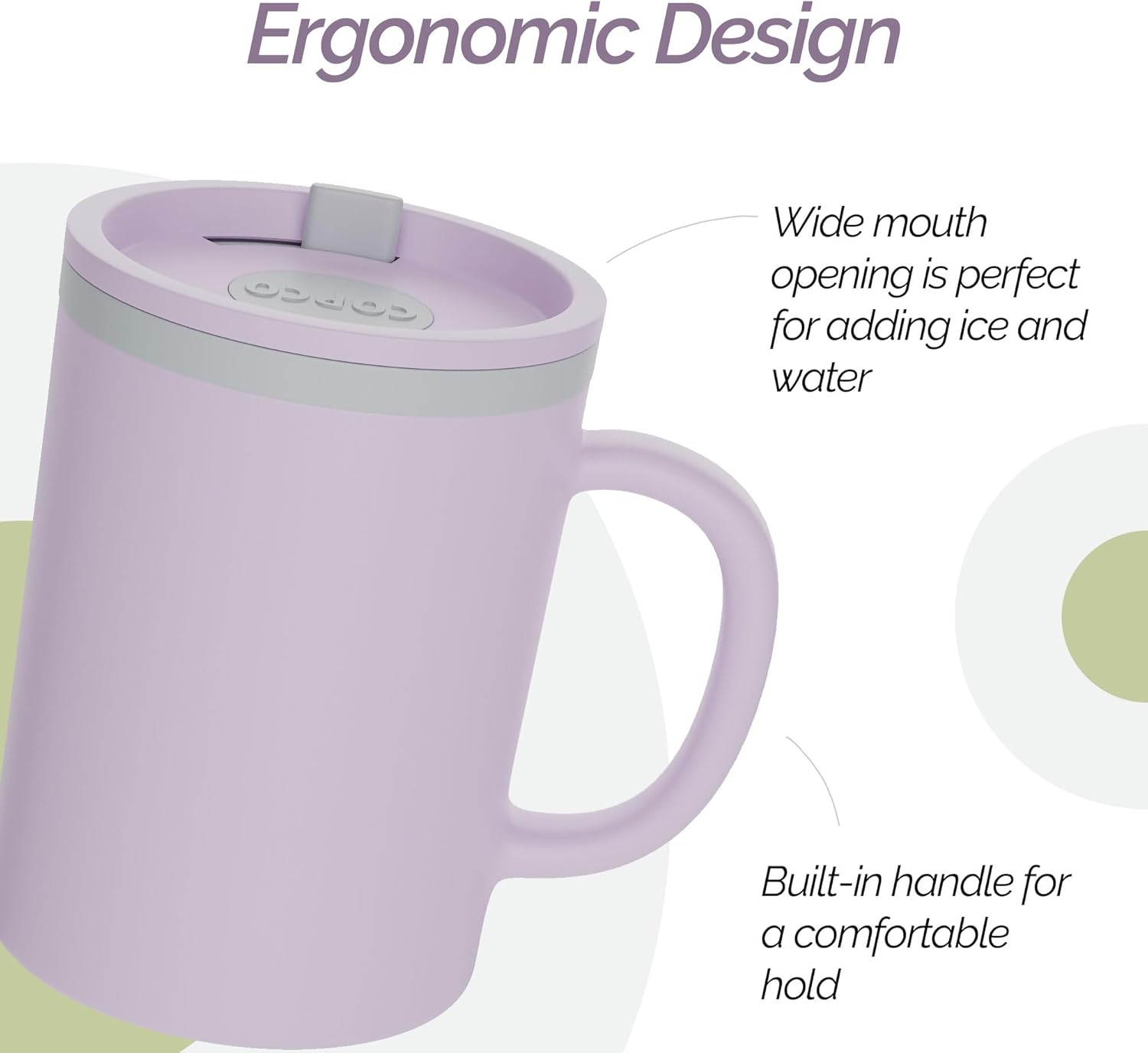 Copco Insulated Coffee Mug with Lid and Handle, 16oz Tumbler, Double Wall To-Go Cup, for Travel, Office, School, Camping, BPA-Free Reusable Plastic, Iconic Set of 2, Purple/Yellow