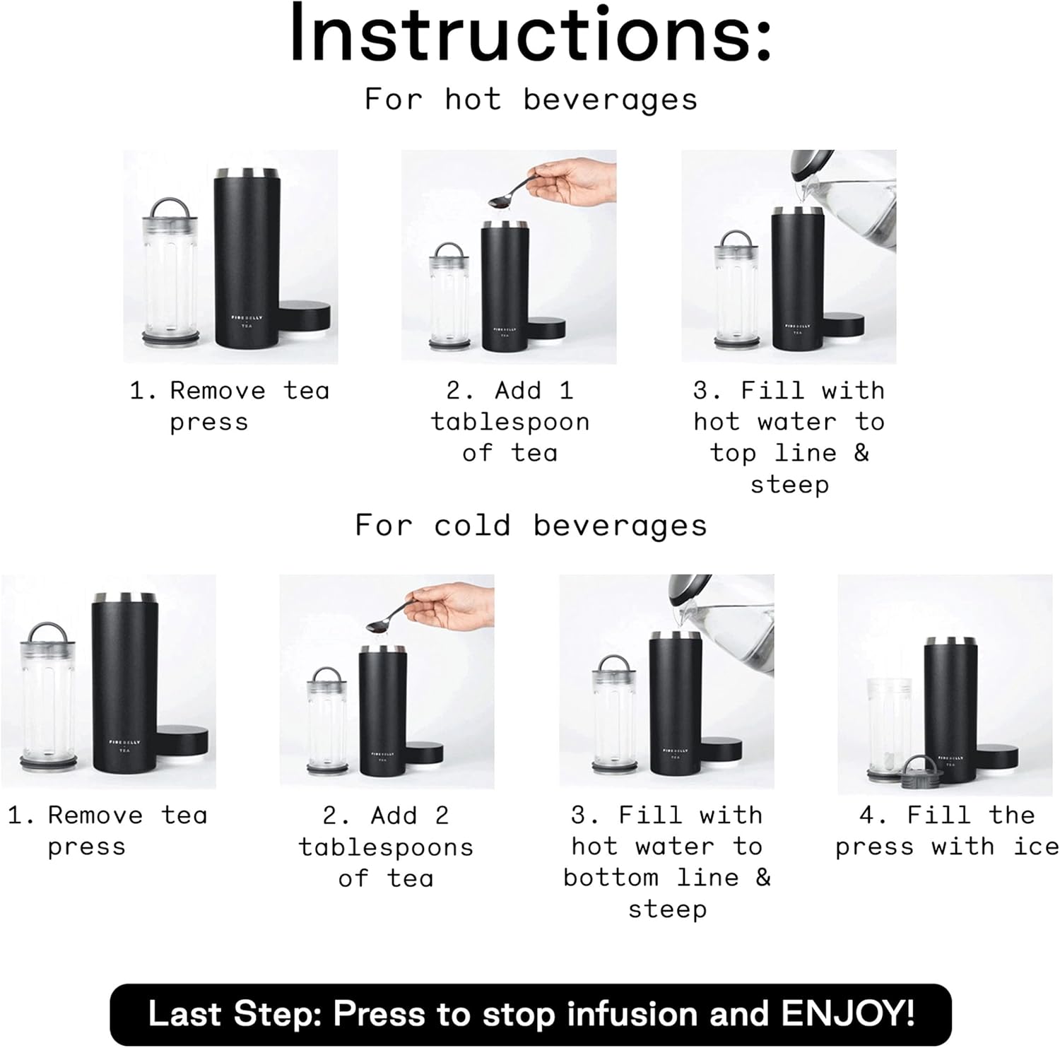 - Steep Loose Leaf Tea Anywhere: Enjoy flavorful tea on the go with our patented press system that stops steeping instantly to prevent bitterness; No need to remove the strainer—just press and sip your favorite loose leaf blend anytime, anywhere