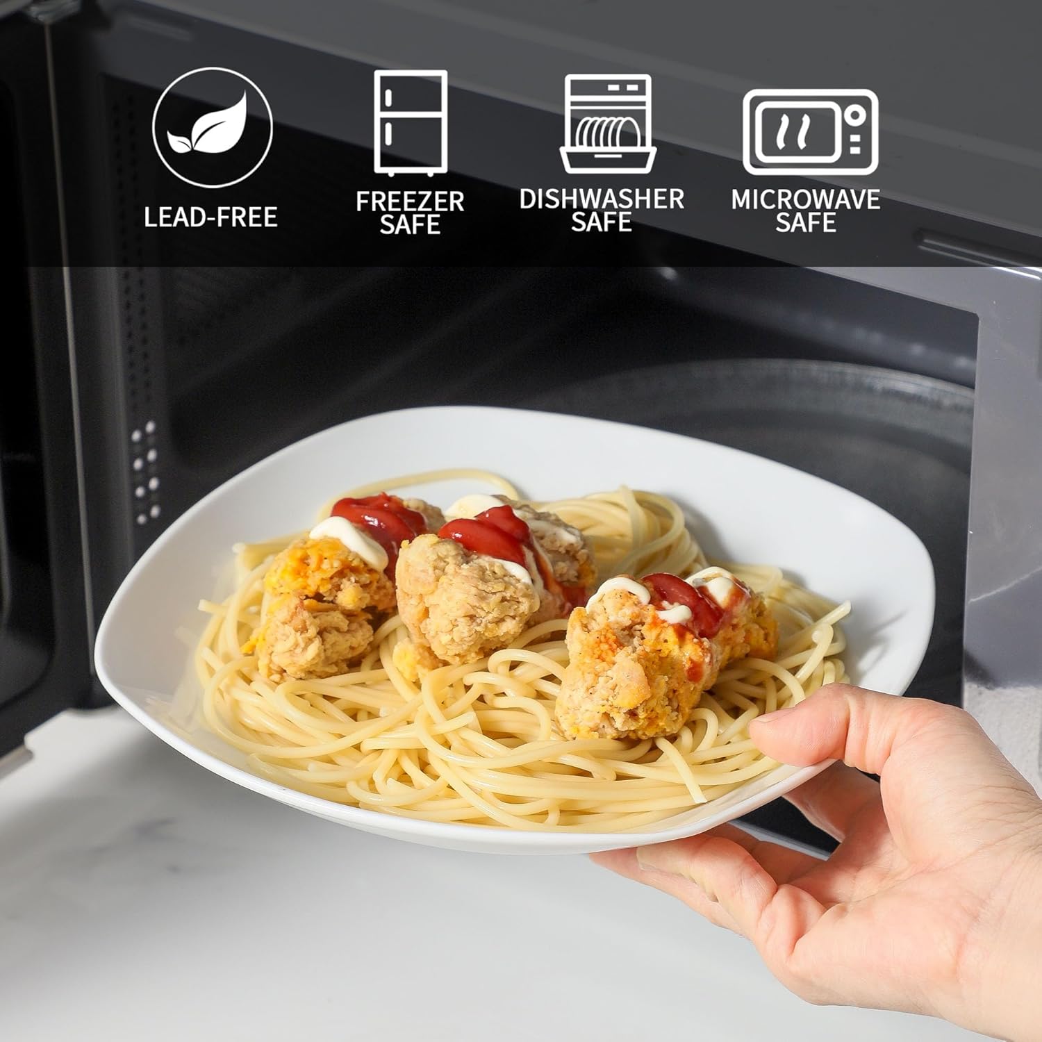- Microwave and Dishwasher Safe: High-quality durable porcelain, no cracks, chips, or flaws. You are able to warm food in the oven or microwave without worry about shattering. These dinner plates are very easy to clean because of the smooth surface. You can wash them with soap and hot water, or simply place them into your dishwasher.Also safe for dishwasher