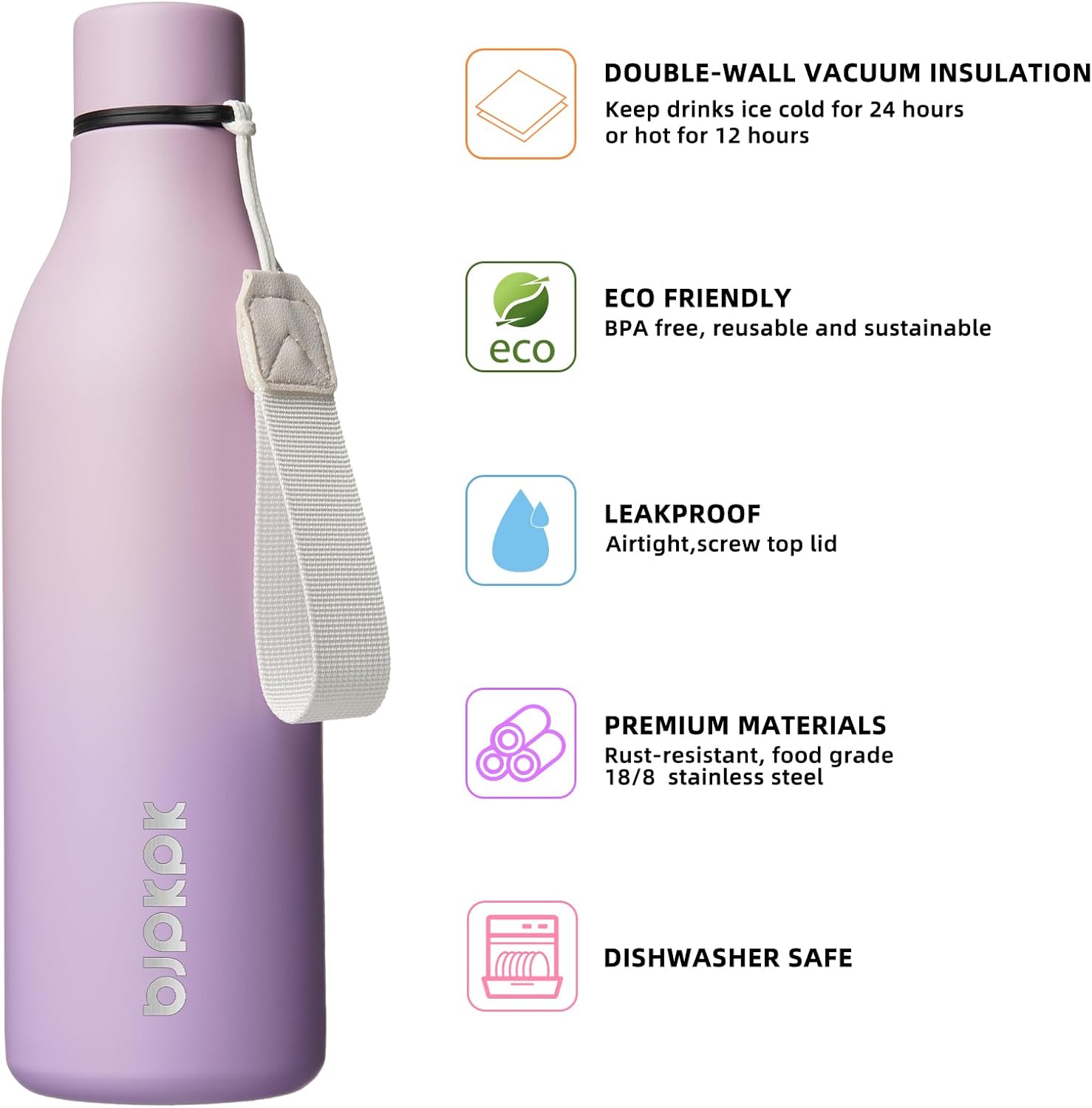 BJPKPK Insulated Water Bottles, 25 oz Stainless Steel Metal Water Bottle with Strap, BPA Free Leak Proof Thermos, Mugs, Flasks, Reusable Water Bottle for Sports & Travel, Dreamy Purple