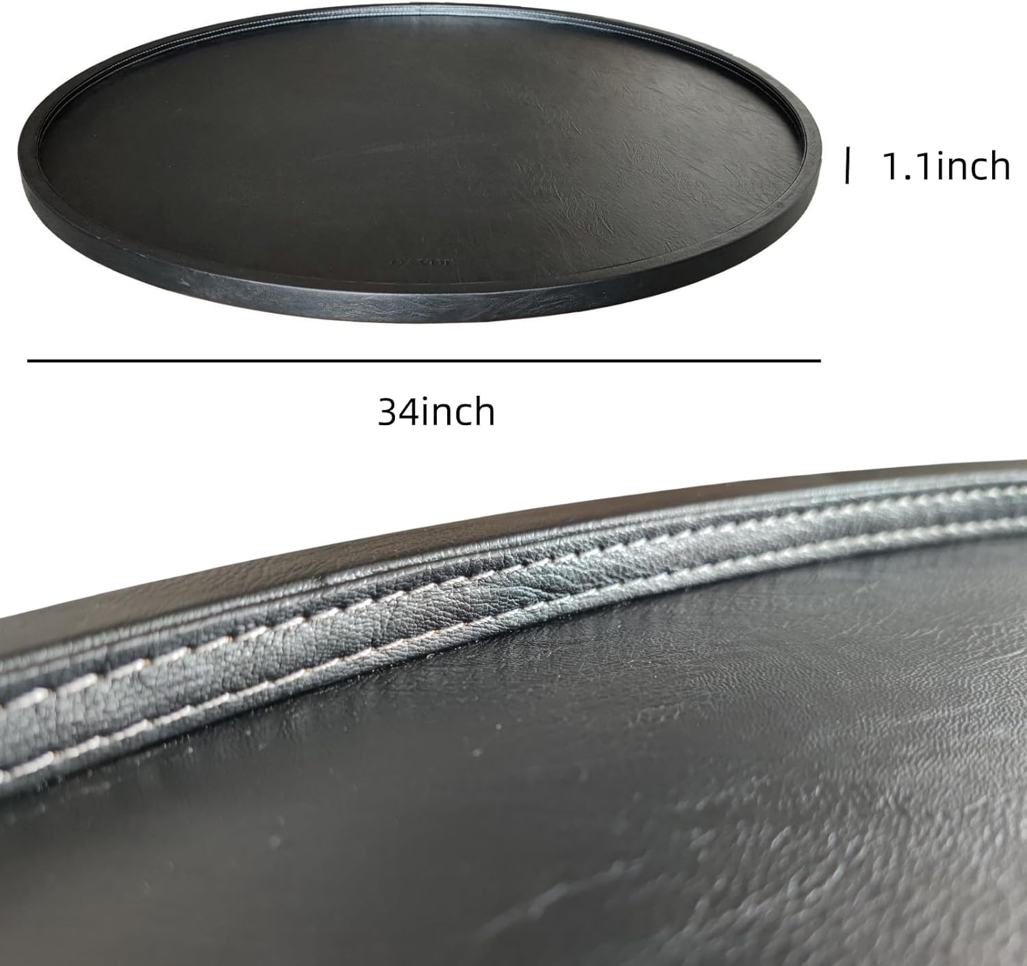 34 * 34 High-End Light Luxury Leather Round Oversized Tray - Ottoman Coffee Food Serving for Family Dinner, Outdoor Picnic & Party Essentials | Versatile Home Decor Tray (34 inch Black)