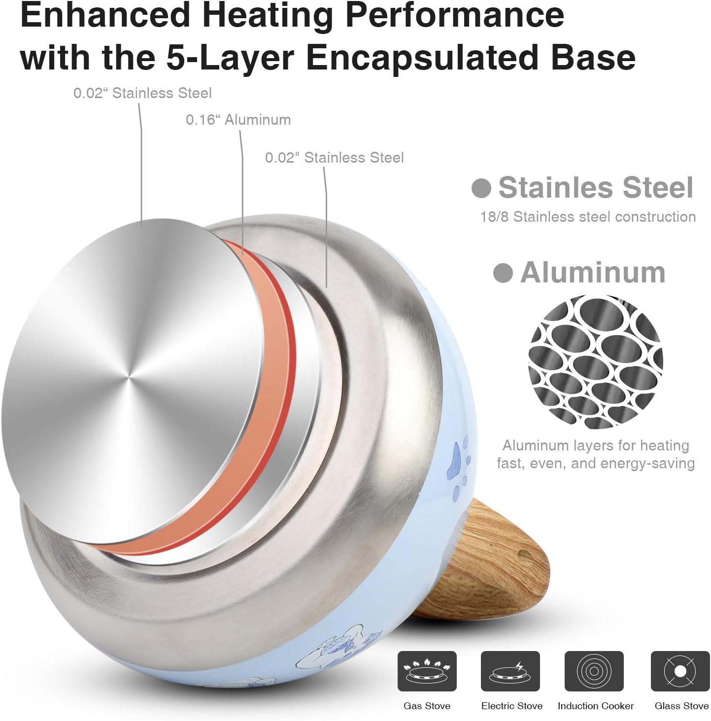 Tea Kettle, Toptier Teapot Whistling Kettle with Wood Pattern Handle Loud Whistle, Food Grade Stainless Steel Tea Pot for Stovetops Induction Water Kettle, 2.7-Quart Blue Cat
