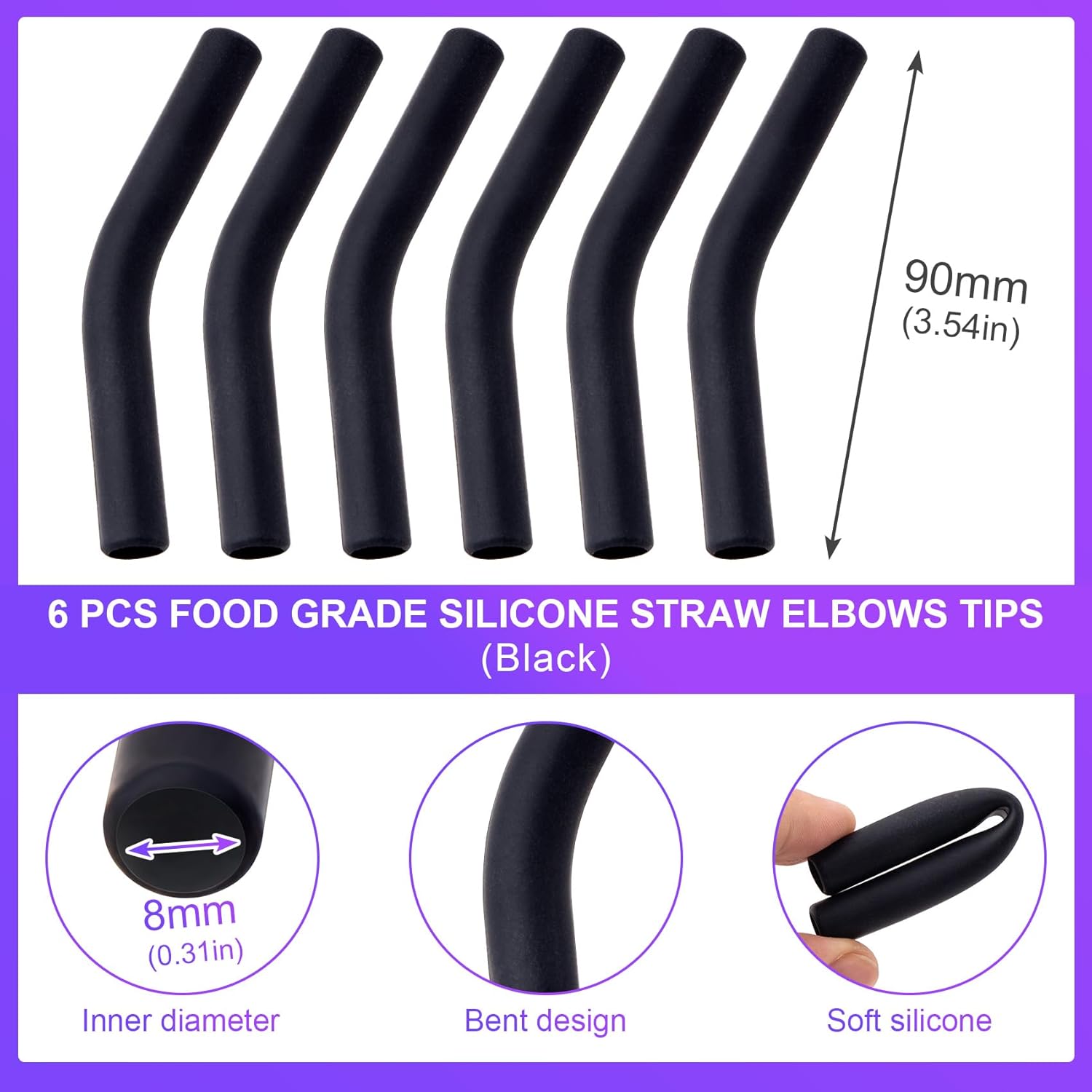 - 【Silicone Elbow Straw Tips Bulk】6 Pcs Black silicone straw tips in the package.(NOTE:Only fit 8mm metal straws,thanks!).We will always back our products with hassle-free service promises.