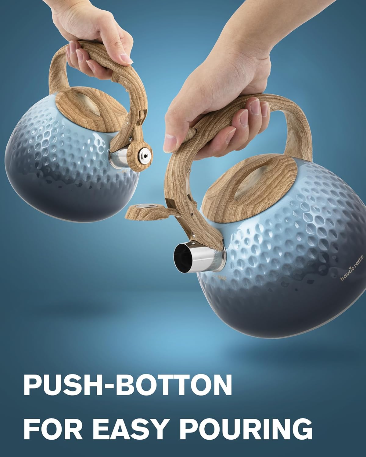 - Anti-Hot Teapots for stove top : The silicone coated handle is effectively insulated, the ergonomic shape and design adds comfort for pouring and filling, and there is a simple button on the handle so you can easily turn the nozzle on and off