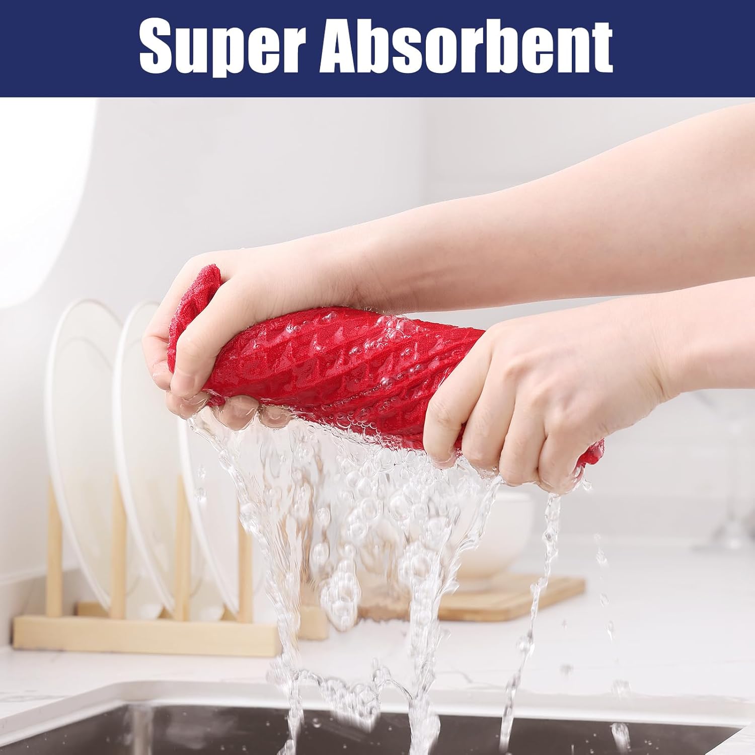 - High Absorbent & Fast Dry: The dish towels with double-sided waffle design, high absorbency, can quickly wipe stains from the surface of the items and fast dry