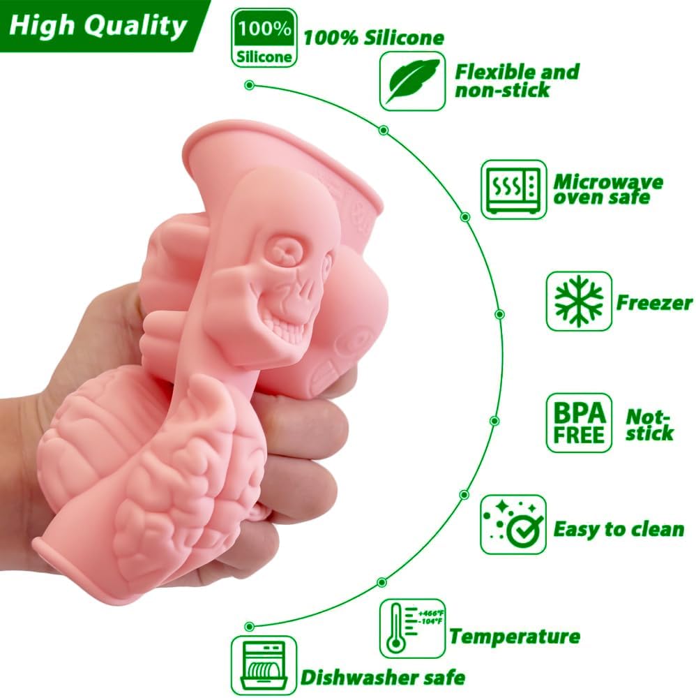 Halloween Chocolate Mold Silicone,2pcs Cavity Candy Gummy Mold with Skull and Brain for Baking Chocolate Jelly Gummy Desser