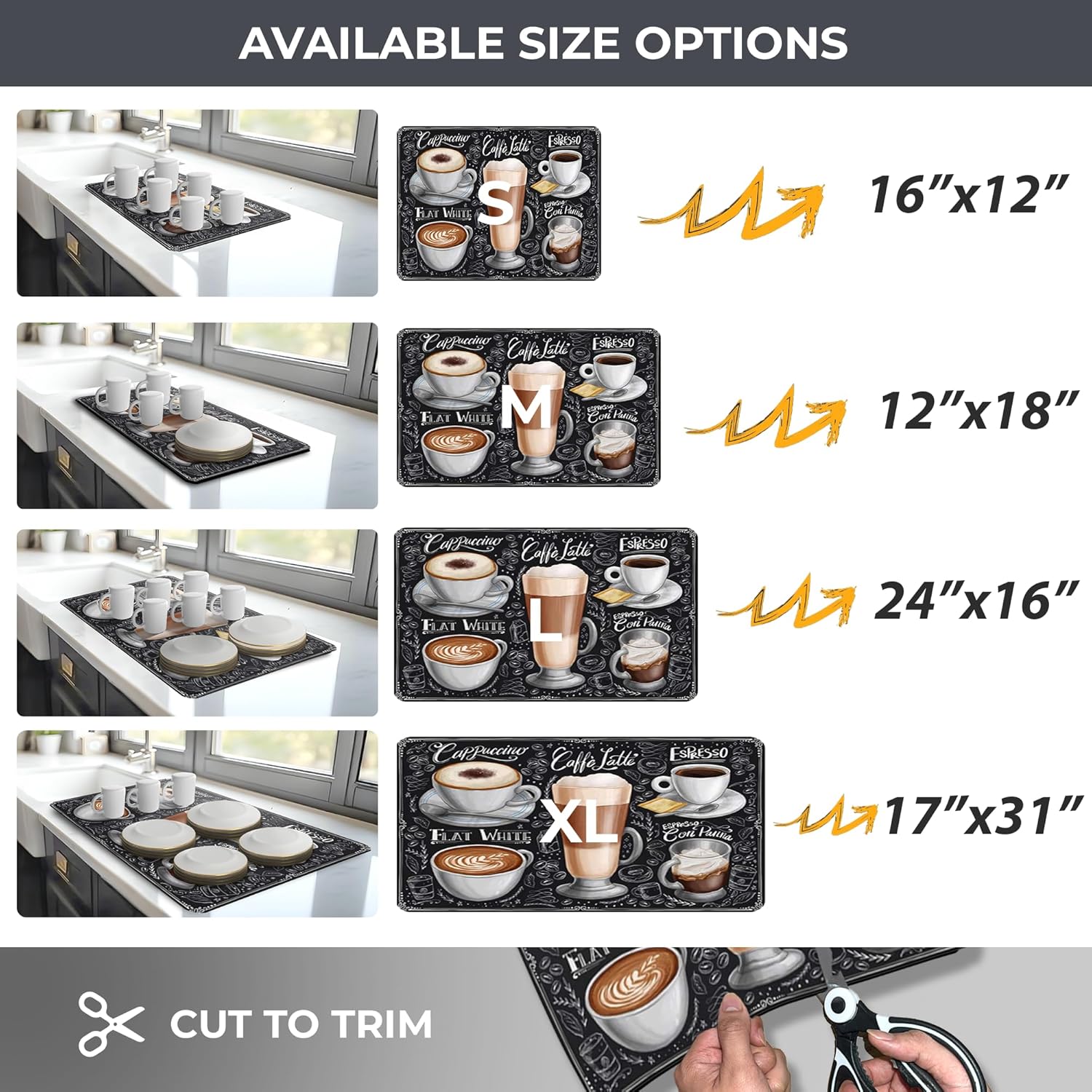 - MULTI-PURPOSE: Elevate your kitchen experience with our Multi-Use Dish Drying Mat. Its versatile design makes it perfect for drying dishes, and glassware, or even as a protective surface for countertop appliances. Streamline your kitchen tasks with a single, versatile solution.
