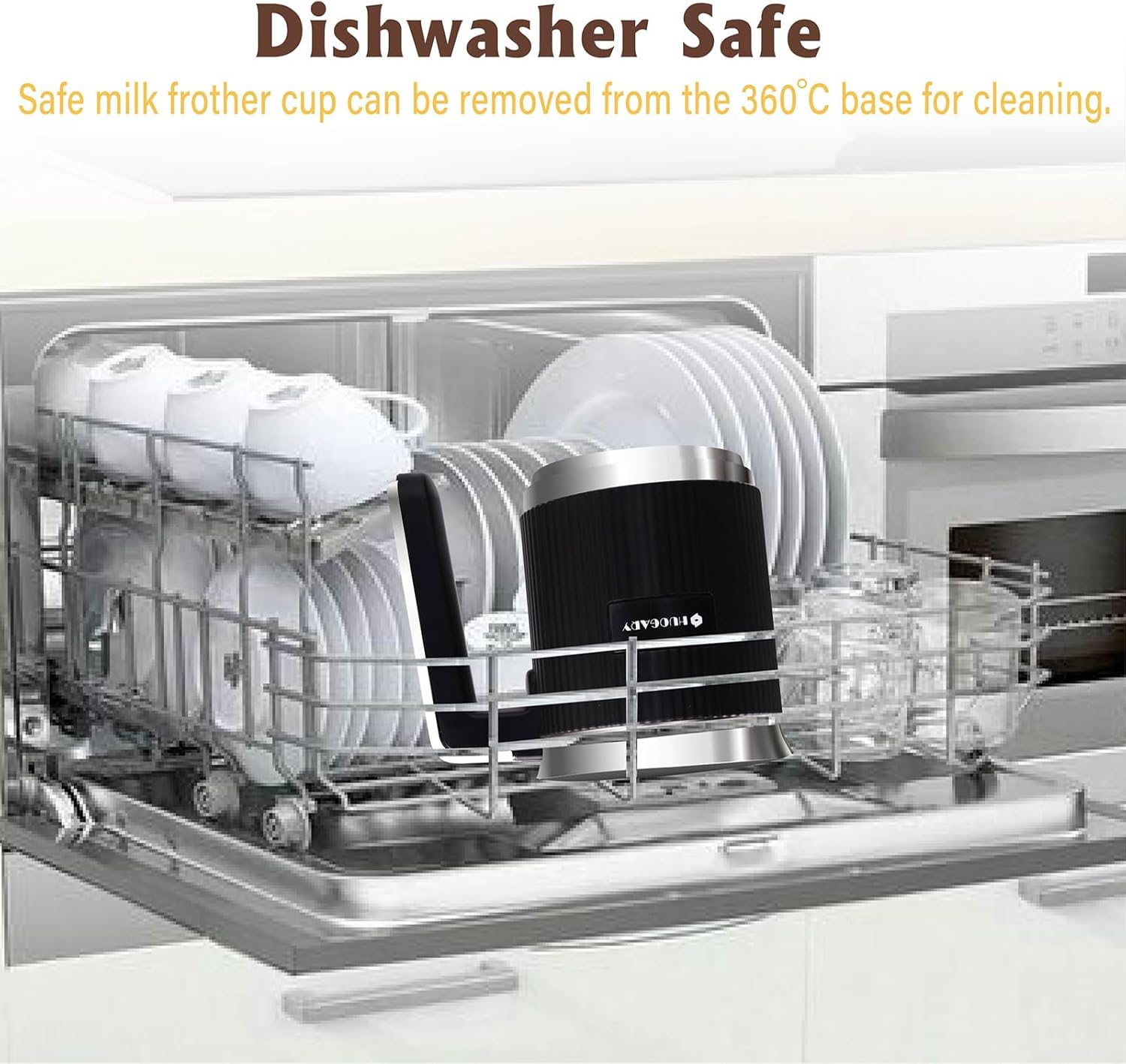 - ☕【Larger Capacity】-- Maximum hot & cold milk froth capacity: 8.5oz/250mL, Maximum hot milk 12.3oz/350mL,Maximum hot chocolate milk 10.1oz. Large froth capacity shares multiple cups of fancy coffee at a time for the household.(Recommend to use whole milk, Fat content>3 % for better frothing result.)