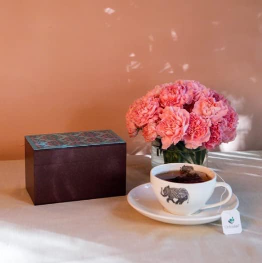 Octavius Assorted Tea Gift Set | 6 Assorted Black & Green Teas | 30 Teabags | Wooden Tea Sampler Pack w/Ornate Floral Design | Pack of 2 | Mothers Day Tea Gift Box