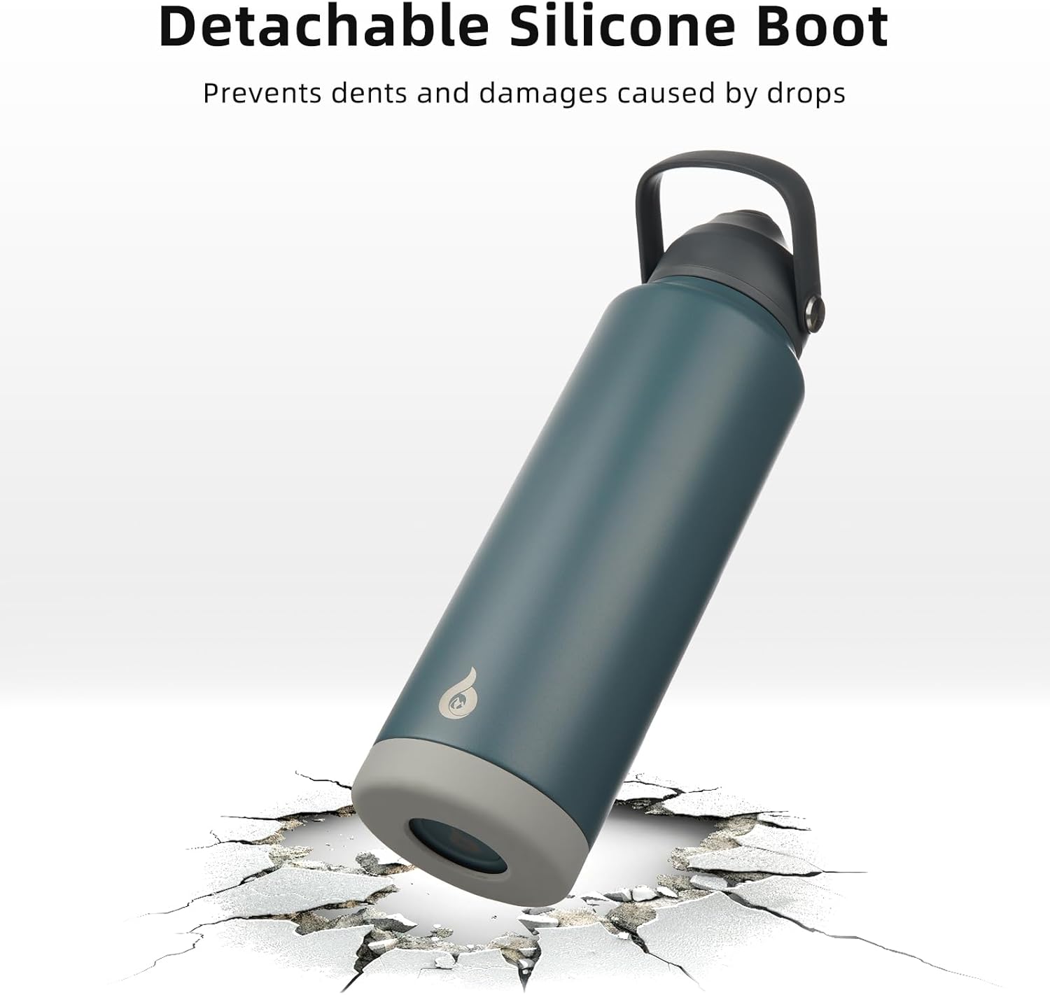 - NON-SLIP PROTECTIVE BOOT & DISHWASHER SAFE: This stainless steel water bottle comes with a detachable silicone boot to protect the bottom from bump damage. The wide mouth design of our water cup allows for easy filling, pouring, and cleaning. With 2 straws and 1 straw brush, you can easily clean the nozzle and straw with straw brush. It is also dishwasher safe, saving you time and effort in maintaining its cleanliness and hygiene