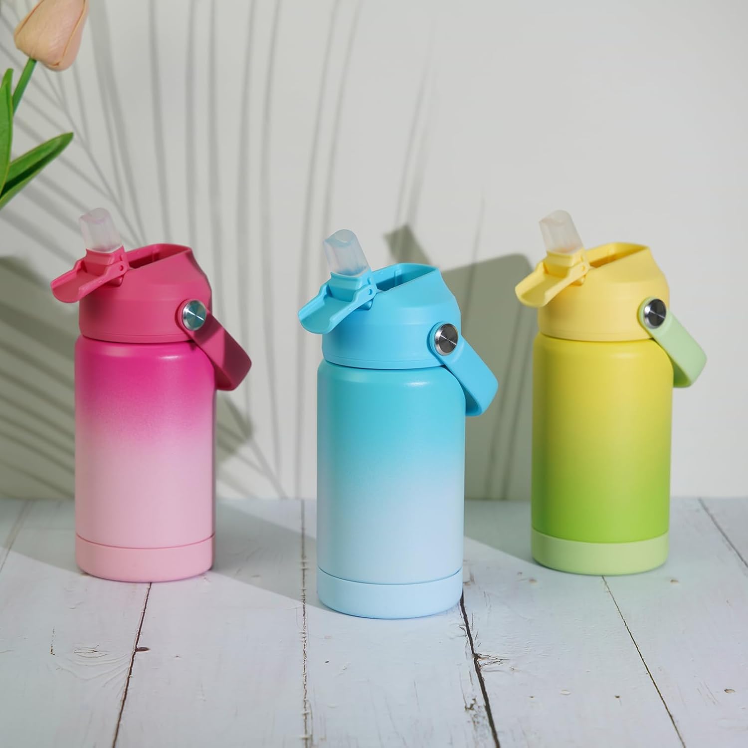 BJPKPK Insulated Water Bottle with Straw Lid, 12oz Thermos Water Bottles, Flex Handle & Non-slip Boot, BPA Free Leak Proof Stainless Steel Metal Thermos, Tumblers, Cups, Sea Salt