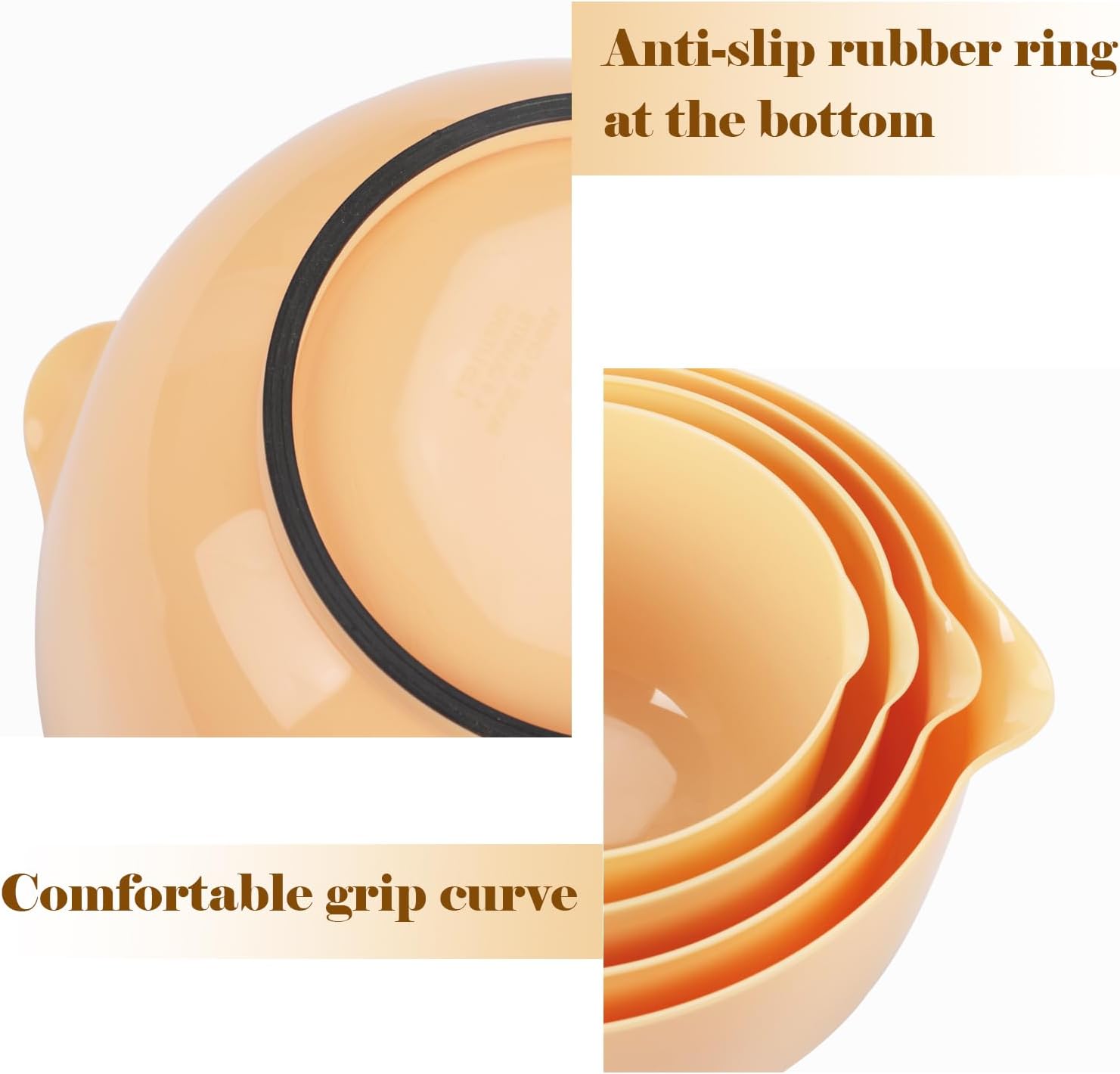 - 【Non-Toxic & Food Safe Material】Our mixing bowl is made of food-grade material, BPA-free and odorless, ensuring the absolute food safety in prepping, washing, baking, mixing and serving. Safe for use in microwave, Note: Please do not overheat as it may shorten the product life. (Temperature Resistance: -20℃~90℃/-4℉~194℉)