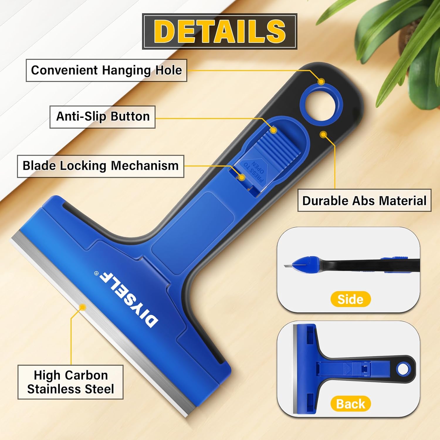 - Seamless Blade Replacements: Our cleaning scraper features a user-friendly locking and release mechanism, making blade replacements a cinch. Push the button to release the blade and effortlessly swap it out for a fresh one. Plus, you can store it safely in the provided box when not in use for added convenience.