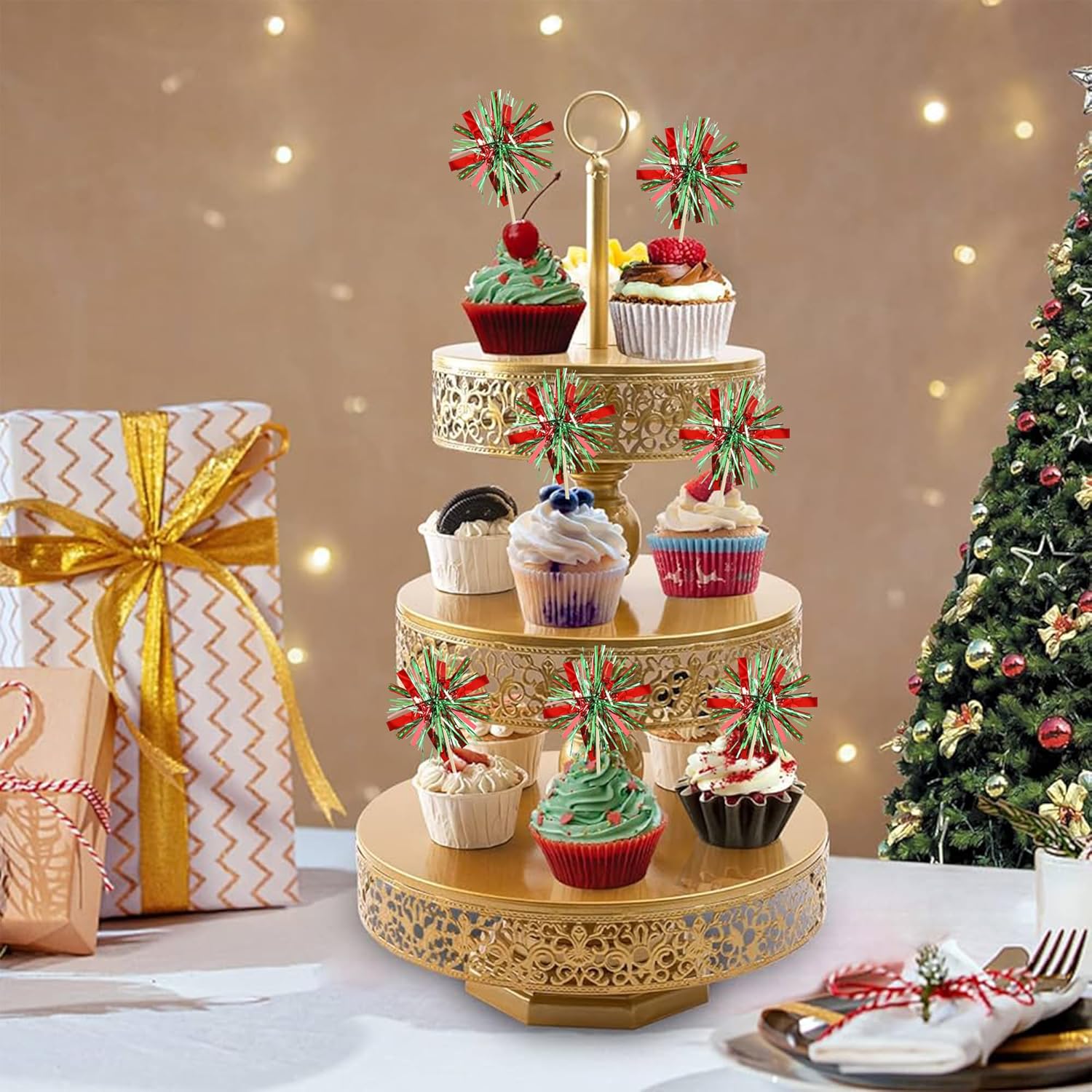 Gyufise 20Pcs Foil Firework Cupcake Toppers Happy Birthday Cake Toppers Tinsel Flower Drink Stirrers Cocktail Food Fruit Toothpicks for Valentine's Day Party Birthday Wedding Supplies Green Red