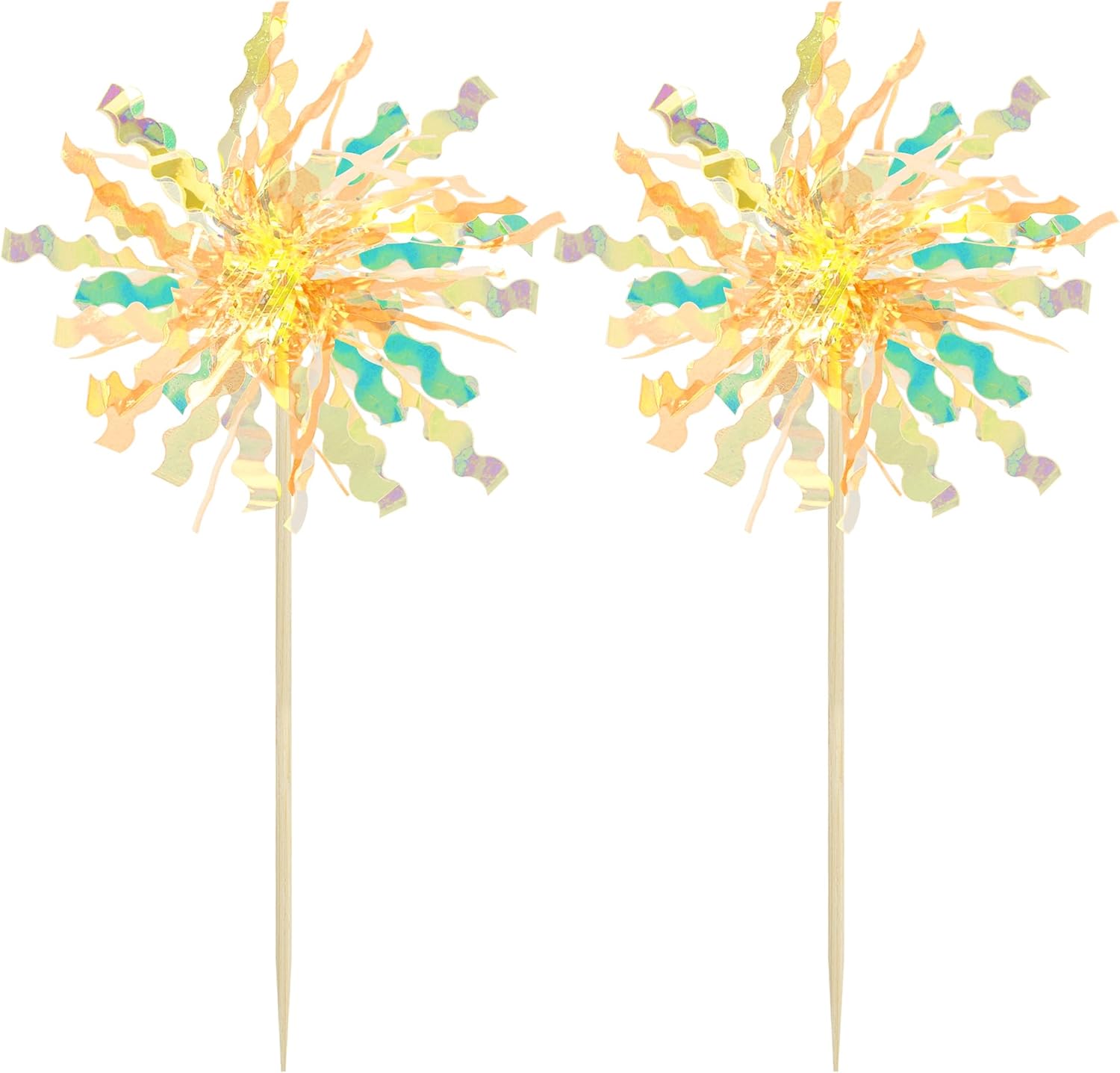 Gyufise 20Pcs Foil Firework Cupcake Toppers Happy Birthday Cake Toppers Tinsel Flower Drink Stirrers Cocktail Food Fruit Toothpicks for Valentine's Day Party Birthday Wedding Supplies Yellow