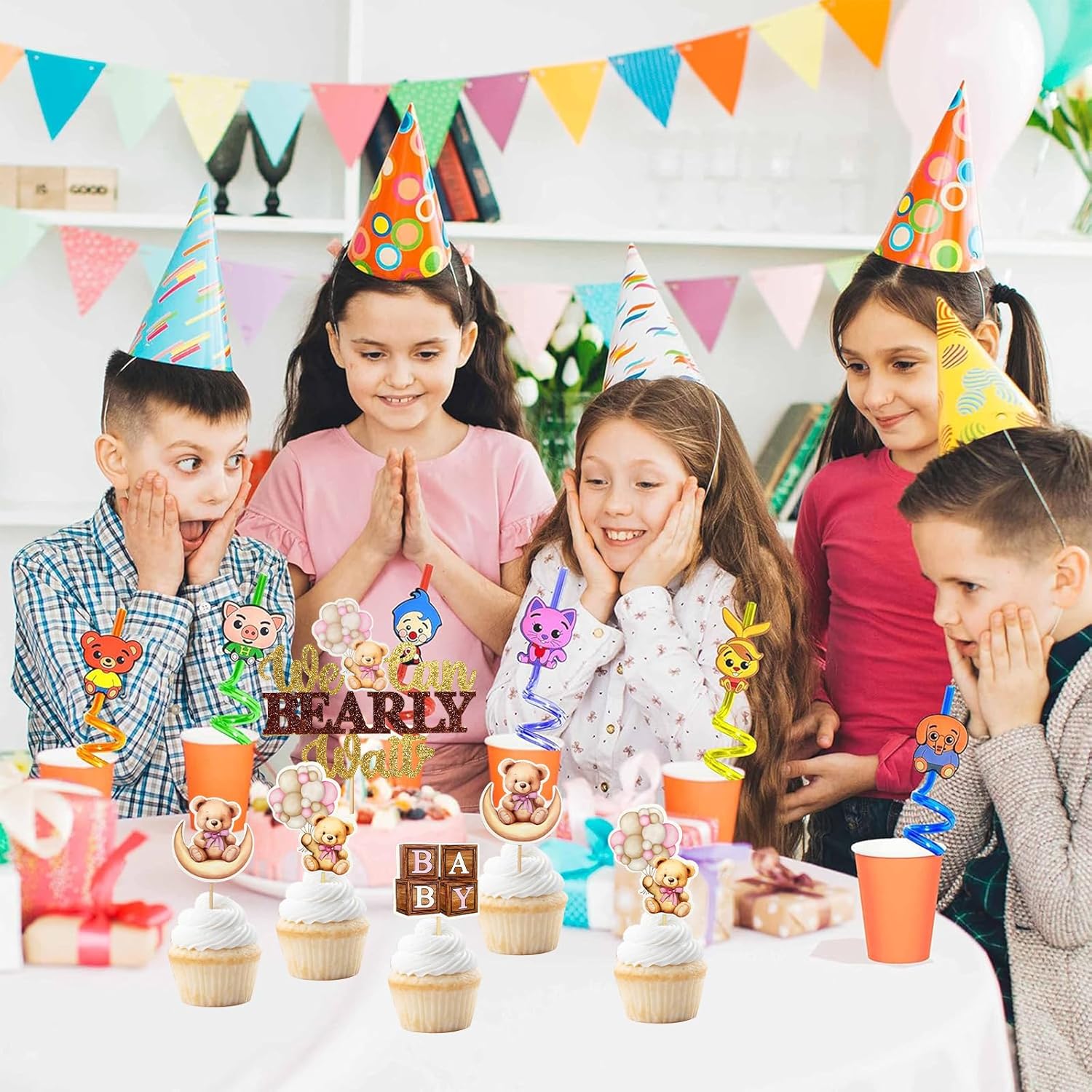 - 【High Quality Material】:These bear birthday cake toppers are made of high quality cardboard, which is environmentally friendly and durable, not easy to burst. Which are safe for kids and grown-ups. Use them without any worries on cupcakes, birthday cakes and more!