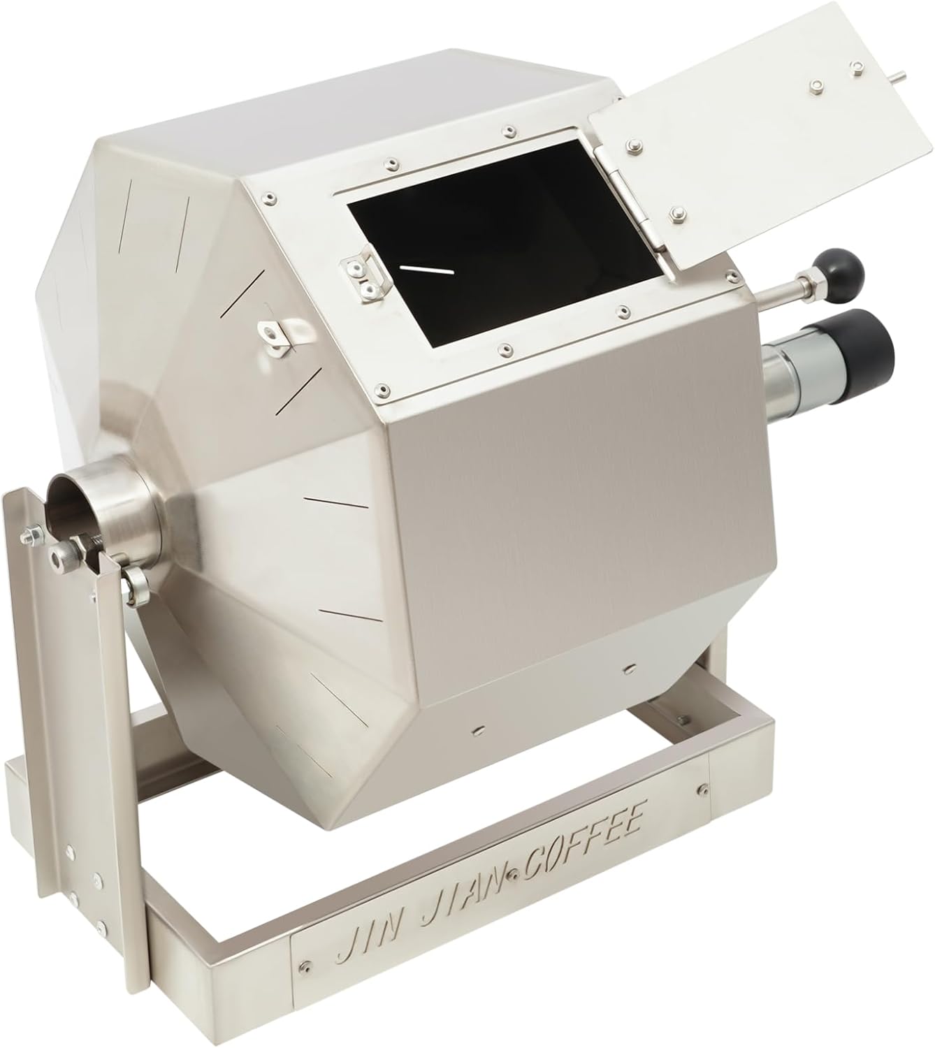 - 💕Automatic & Uniform Heating: The stainless steel coffee bean roaster is equipped with a DC 12V 14W motor and a speed controller (5-45 RPM). After the power is turned on, the nut roaster rotates at a fixed speed. The V-shaped and T-shaped double baffles inside ensure uniform rotation and heating of the roasted materials, saving more time and energy than traditional manual roasters