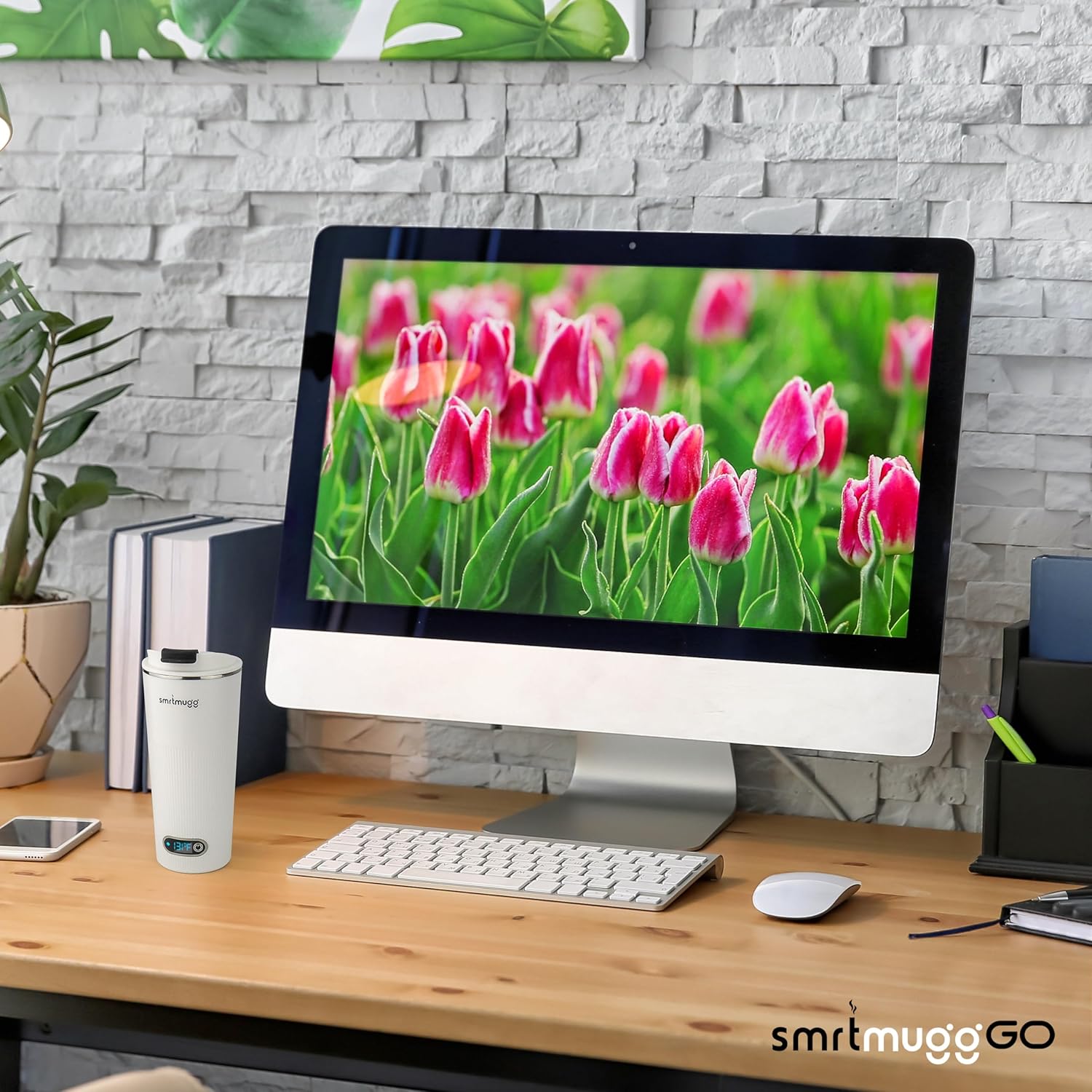 GO Heated Coffee Mug, Travel Mug, 13.5 OZ. Smart Mug, Battery Powered Heated Coffee Mug, Great for Coffee and Tea, Snap on Magnetic Charging Cord, New and Improved (White)