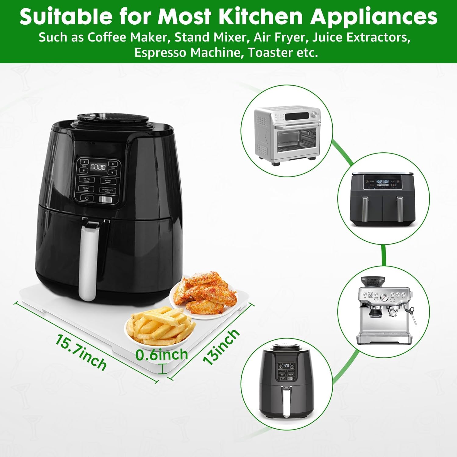 - 【Multi-functional Sliding Tray】Slider size 12.8 "W x 15.8 "L x 0.6 "D, suitable for Keurig K-Mini, Ninja,small coffee makers, espresso machines, air fryers, toasters and stand mixers.