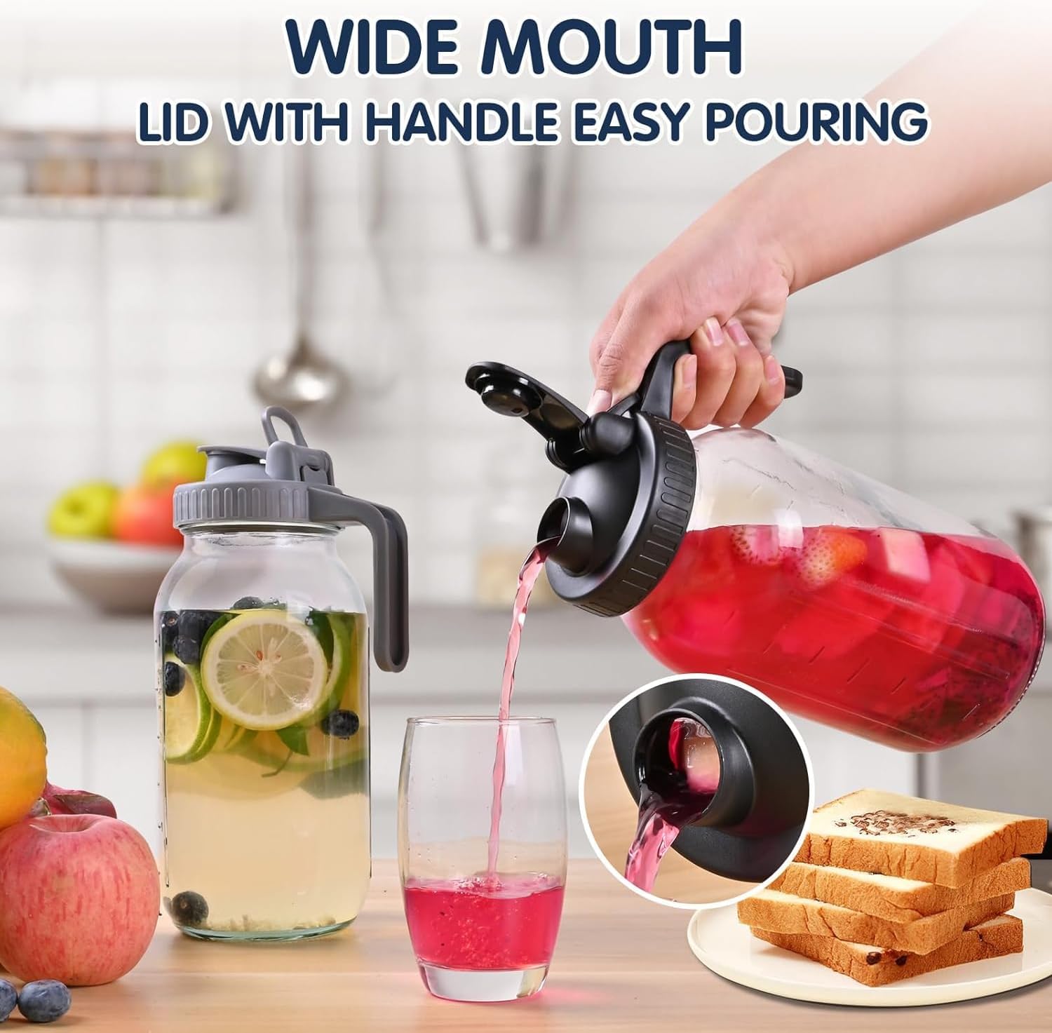 64OZ Glass Pitchers with Lid, Wide Mouth Water Jugs, Leak-Proof Airtight Mason Jars for Cold Brew Coffee, Iced tea, Milk, Food Storage, Sun Tea Jar (Grey)